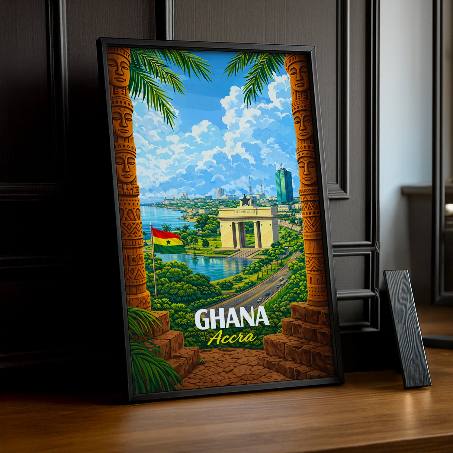 Embarquez pour Accra avec ce cadre photo vibrant qui célèbre l'essence dynamique du Ghana ! Capturez l'énergie, la chaleur et le charme de cette métropole côtière emblématique. Parfait pour les globe-trotters en quête d'authenticité ou les passionnés de culture africaine, ce cadre transforme vos murs en carnet de voyage. Laissez-vous séduire par les couleurs éclatantes et l'atmosphère joyeuse d'Accra. Un accessoire déco qui raconte une histoire et invite à l'exploration !