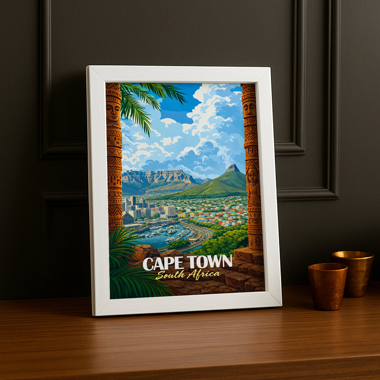 Envolez-vous vers Le Cap avec ce cadre photo spectaculaire qui célèbre la perle de l'Afrique du Sud ! Admirez la majestueuse Table Mountain, les plages immaculées et l'horizon infini de cette destination mythique. Ce cadre apporte une touche de grandeur et d'aventure à votre intérieur. Idéal pour les rêveurs, les amateurs de paysages époustouflants ou les nostalgiques de voyages inoubliables. Transformez votre mur en fenêtre sur l'une des plus belles villes du continent et laissez-vous porter par la magie sud-africaine !