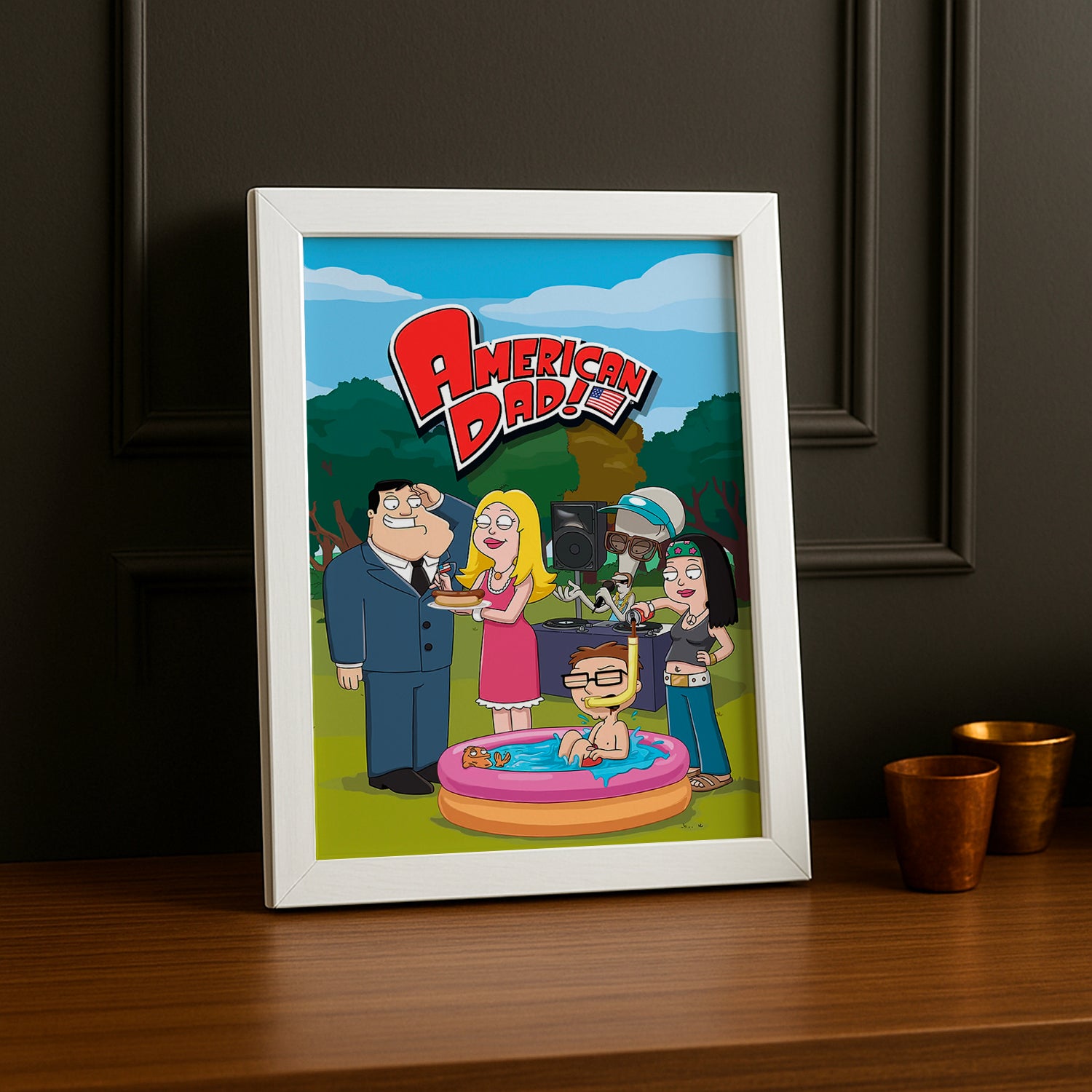 Cultivez votre amour pour American Dad dans ce cadre photo sur le thème du jardin ! Fleurissez votre décoration avec une touche verte et loufoque qui célèbre les moments les plus amusants de la série en plein air. Parfait pour les fans qui adorent mélanger nature et comédie, ce cadre apporte une fraîcheur bucolique à votre intérieur. Que vous y affichiez vos photos de jardinage ou simplement vos scènes préférées de la série, cette pièce cultive la bonne humeur à chaque regard. Plantez ce cadre fièrement et regardez votre collection American Dad s'épanouir comme jamais !