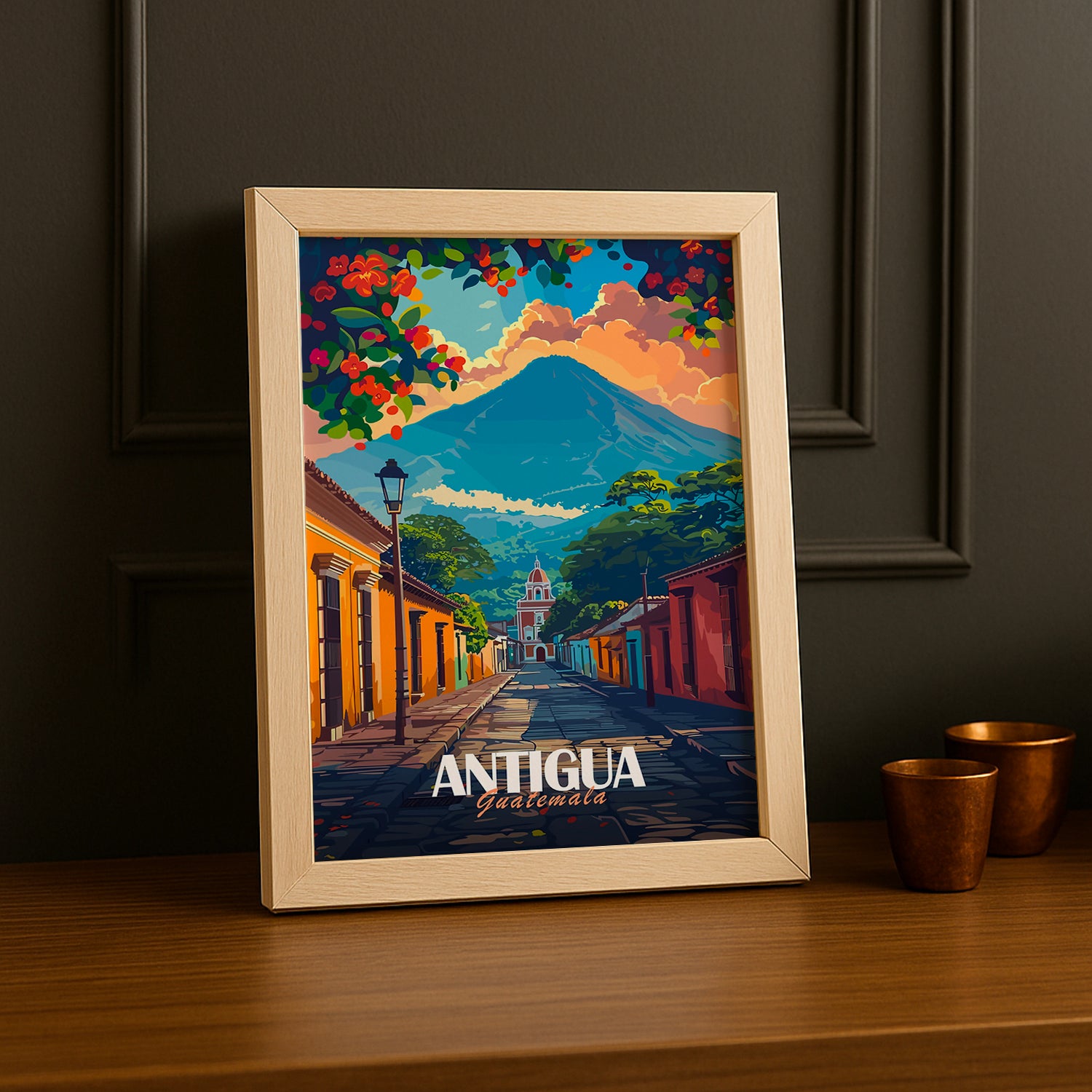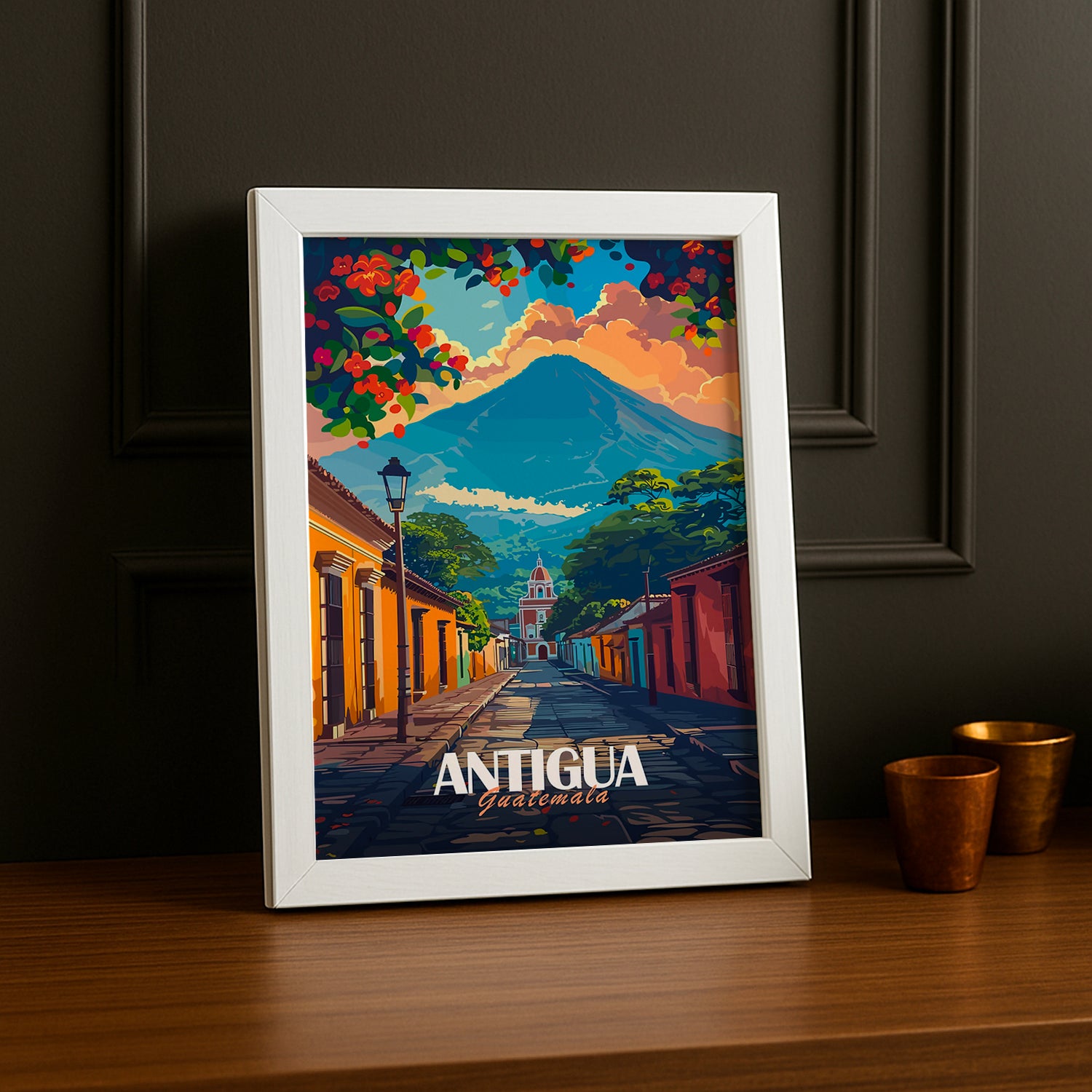 Que vous soyez un amoureux de l'Amérique centrale, un passionné de voyages culturels, ou un admirateur de l'Antigua, ce cadre est un ajout parfait à votre collection ou un cadeau idéal pour tout amateur de cette ville magnifique.