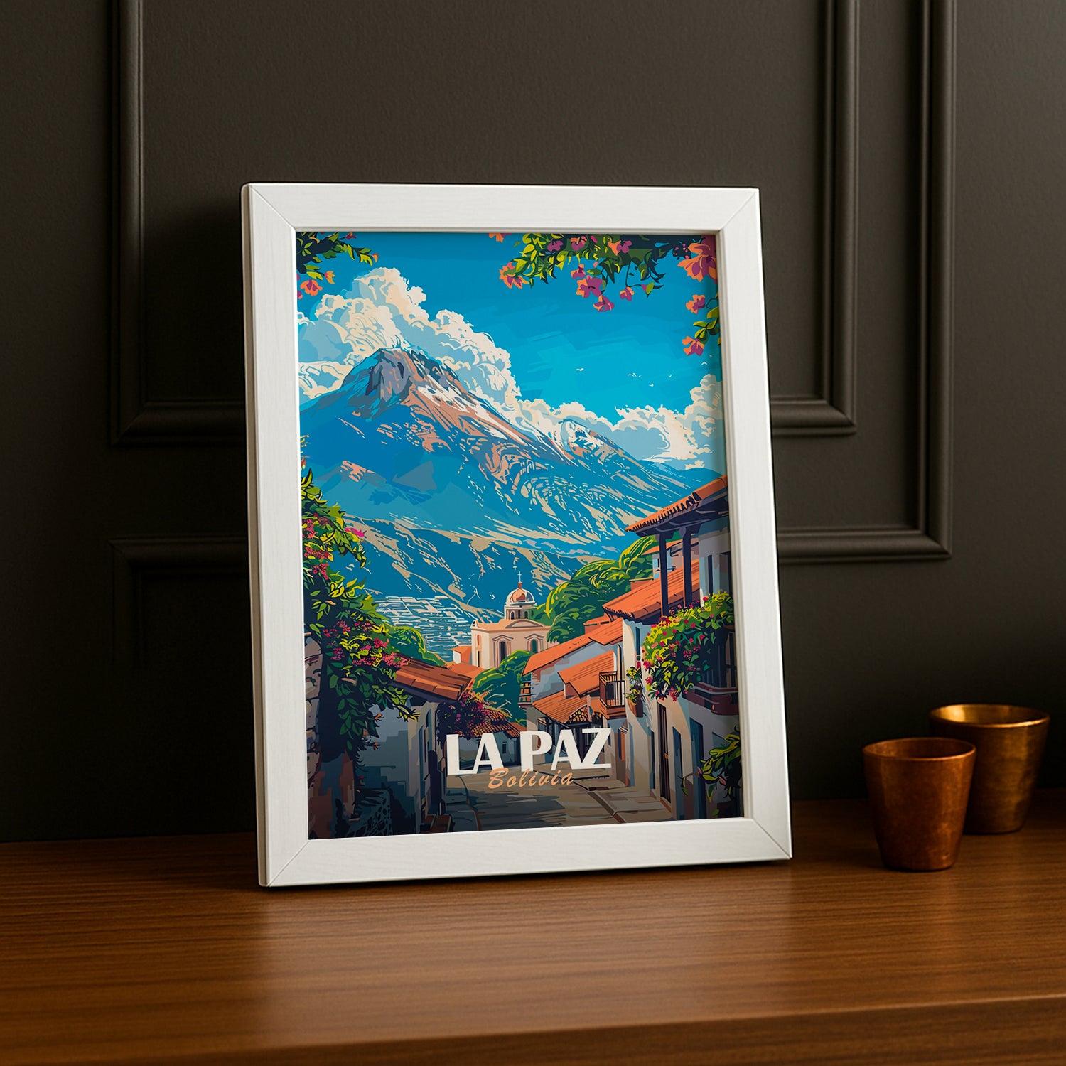 Que vous soyez un passionné de voyages, un amateur de culture sud-américaine, ou un curieux explorant des horizons lointains, ce cadre est l'ajout idéal pour votre collection ou un cadeau parfait pour ceux qui rêvent de découvrir La Paz.
