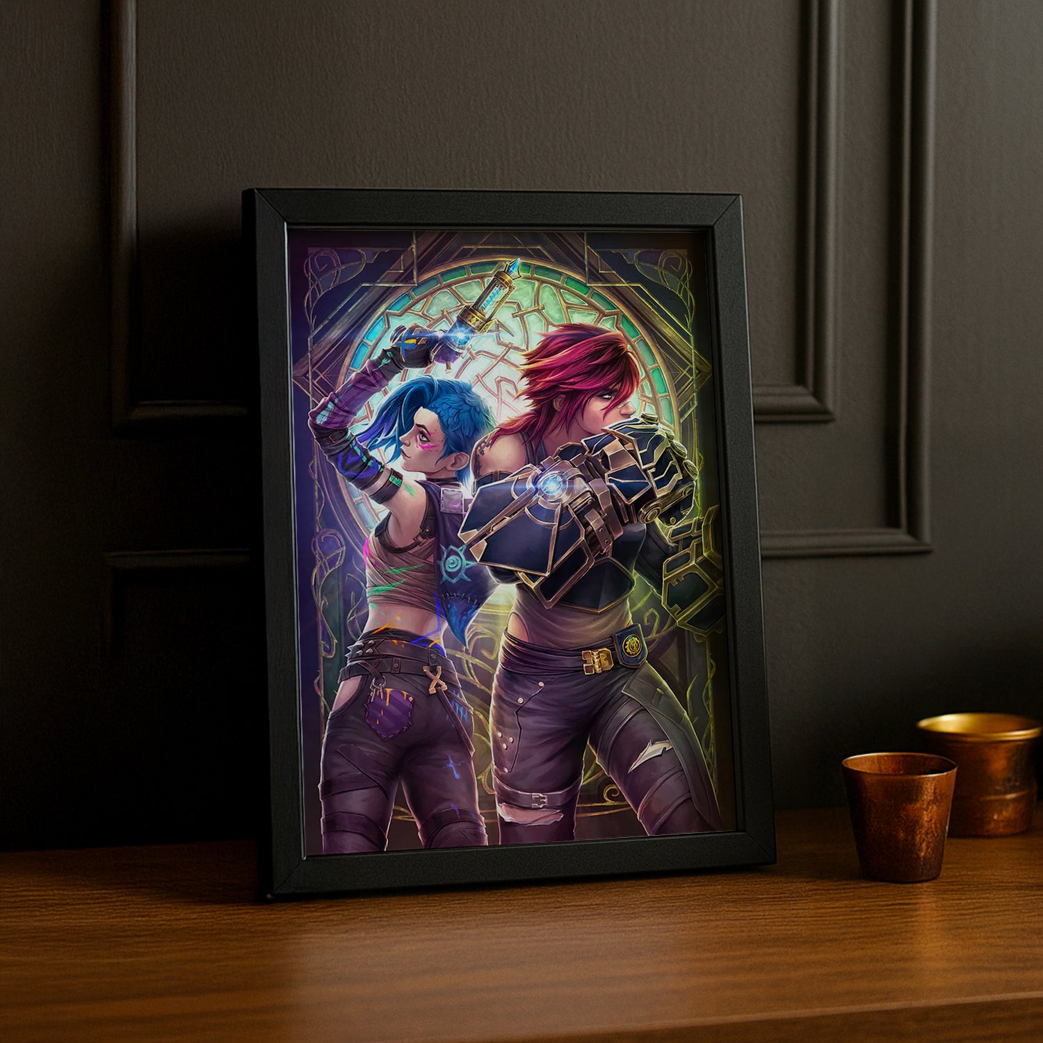 Idéal pour les fans de League of Legends et de Arcane, ce cadre est une pièce de décoration parfaite pour toute pièce de votre maison, qu’il s’agisse du salon, de la chambre, d’un bureau ou d’un espace de jeu. Il incarne la dualité entre la force protectrice de Vi et la folie créative de Jinx, offrant un visuel à la fois puissant et chargé d’émotion.