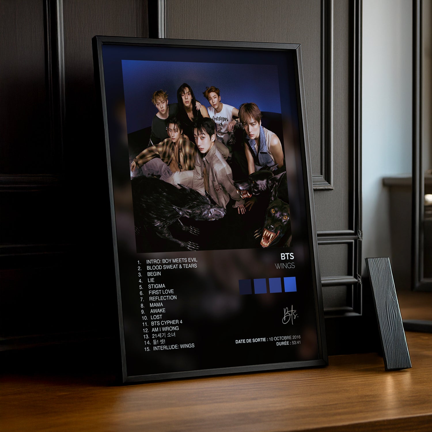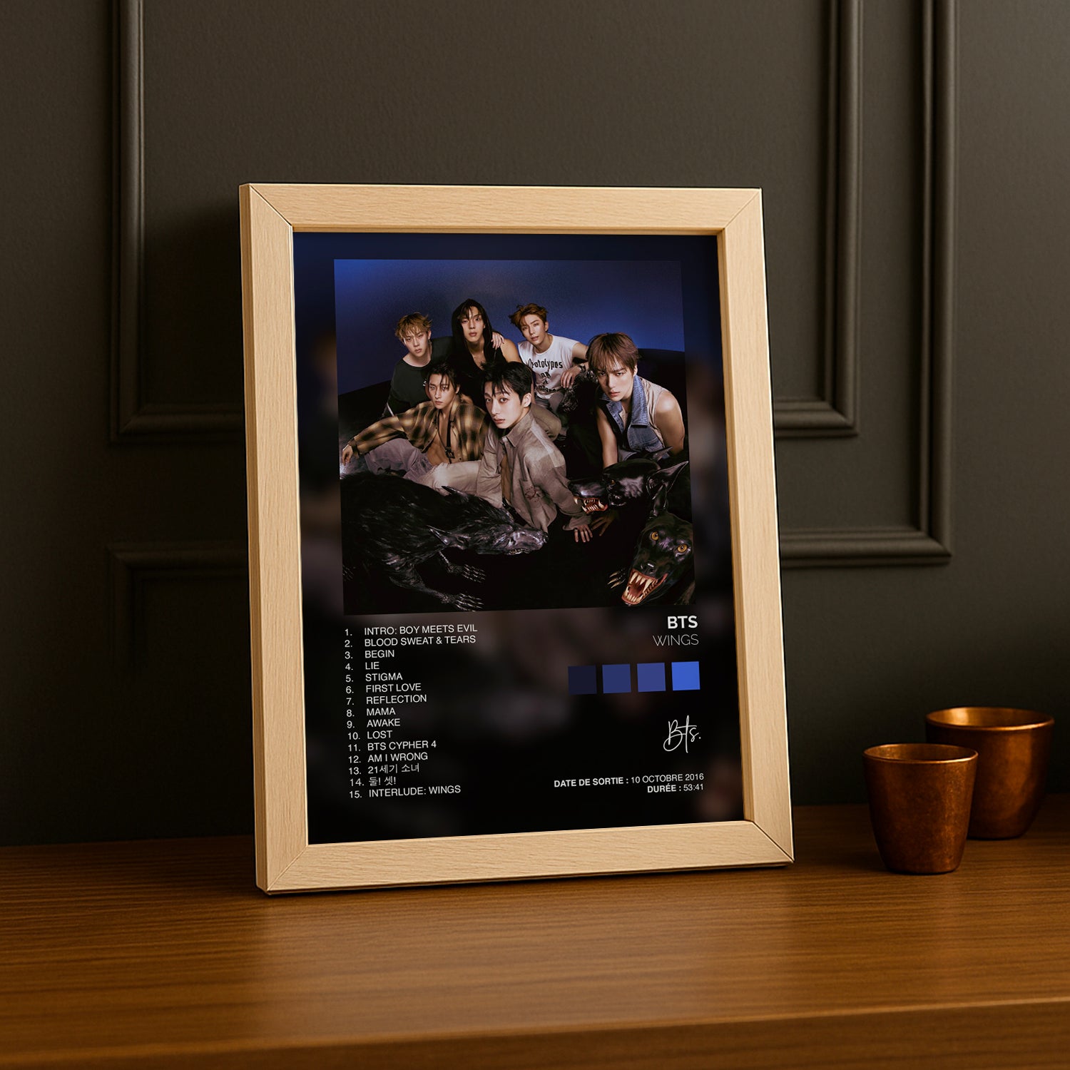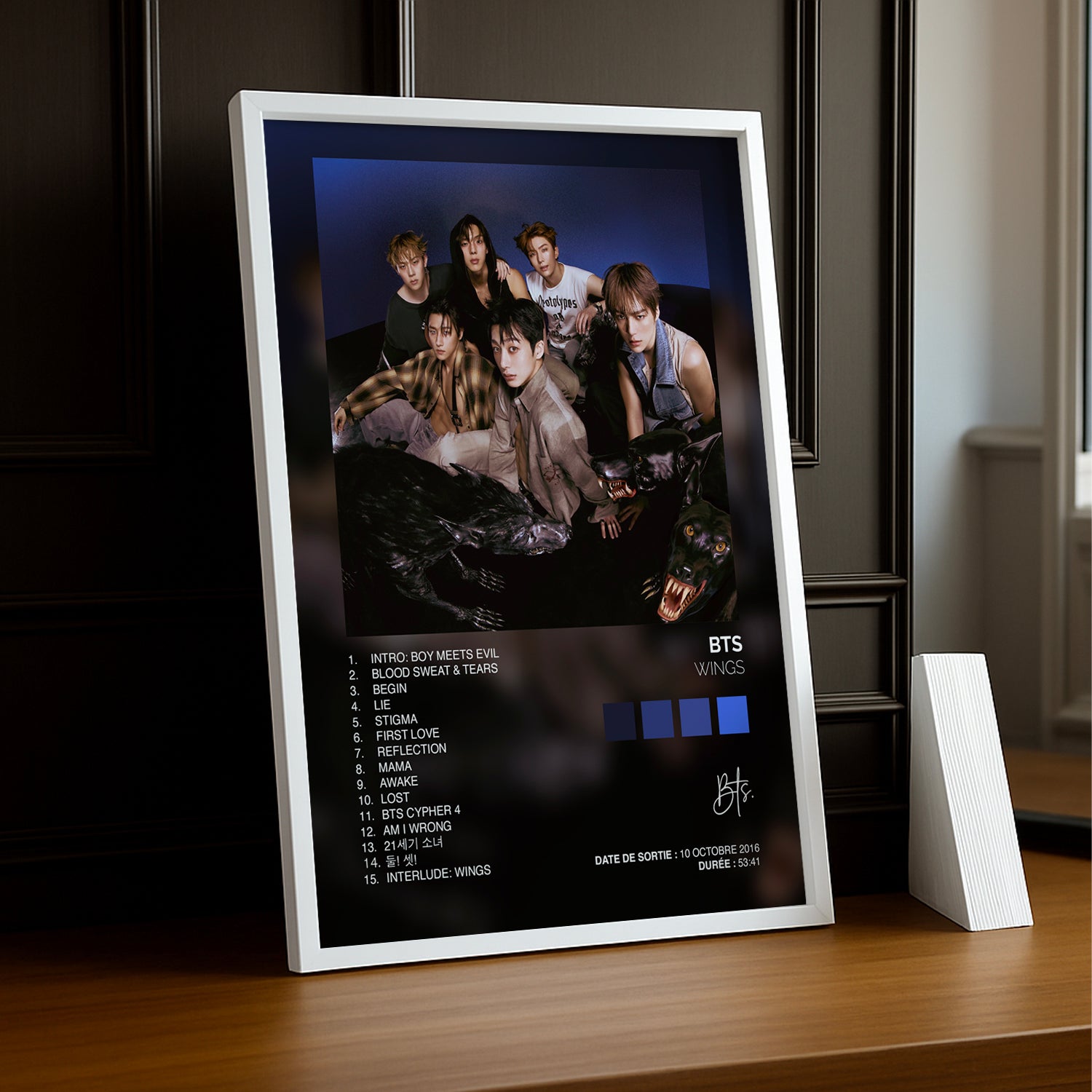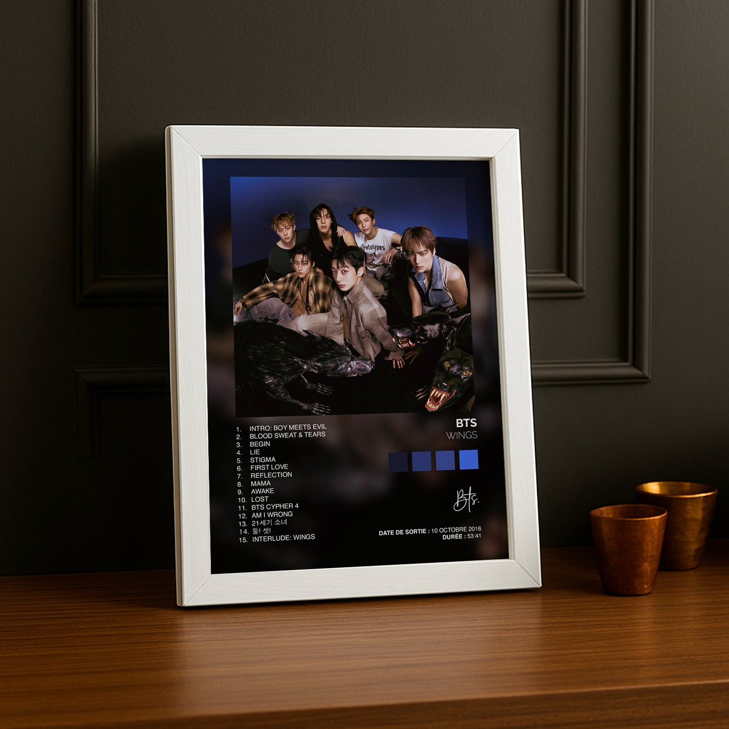 Prenez votre envol avec ce cadre photo K-Pop BTS "Wings" ! Cet accessoire vibrant célèbre l'album emblématique qui a marqué l'histoire du groupe et capture l'essence de leur évolution artistique. Parfait pour les ARMY passionnés, ce cadre transforme vos souvenirs en décoration inspirante qui raconte votre histoire de fan. Accrochez-le dans votre chambre, votre bureau ou votre espace dédié aux idoles pour un style K-Pop authentique. Avec ce cadre, laissez votre admiration pour BTS s'exprimer librement !
