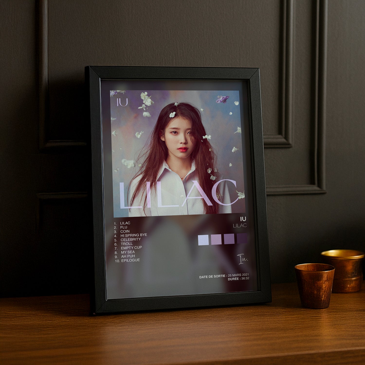 Fleurissez votre espace avec ce cadre photo K-Pop IU "Lilac" ! Inspiré de l'album délicat et poétique de la reine de la K-Pop, ce cadre capture toute la beauté et la sensibilité d'IU. Parfait pour les fans qui veulent célébrer l'artiste avec élégance, ce cadre transforme vos photos préférées en décoration raffinée et intemporelle. Que vous le placiez dans votre chambre, votre bureau ou votre coin dédié aux idoles, il apporte une touche de K-Pop sophistiquée et douce. Un accessoire magnifique pour tous ceux qui admirent le talent et la grâce d'IU !