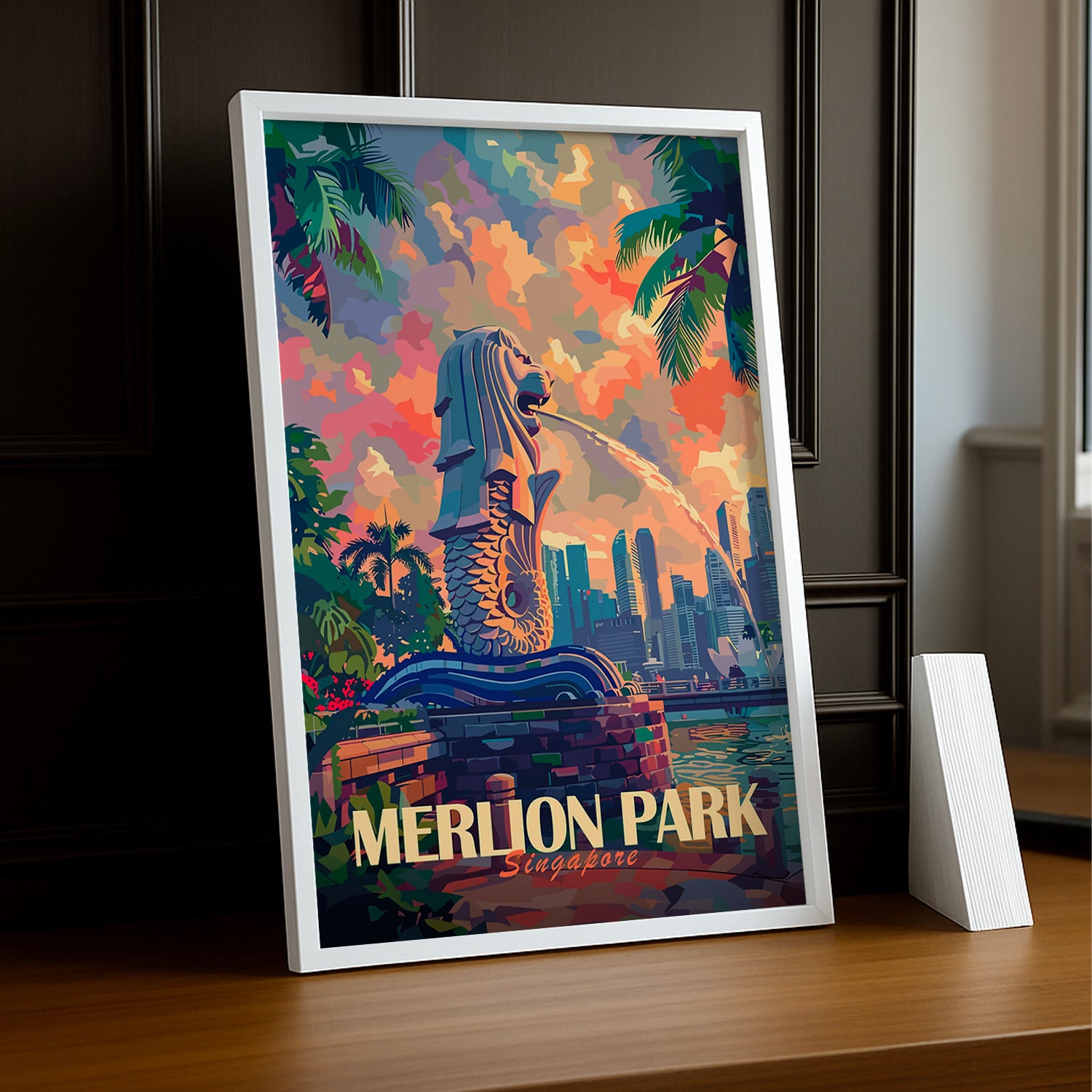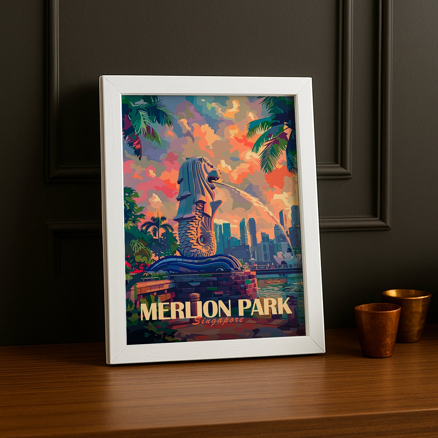 Affichez votre passion pour Singapour avec ce cadre photo captivant du Merlion Park, l'une des attractions les plus emblématiques de la ville ! Ce cadre capture l'esprit de la merlion, mi-poisson, mi-lion, symbolisant la fusion de la richesse historique de Singapour et son dynamisme moderne. Que ce soit la majesté de la Merlion crachant de l'eau ou la vue panoramique de la baie de Marina Bay Sands, ce cadre vous transporte au cœur de l'urbanisme et de la beauté de Singapour.