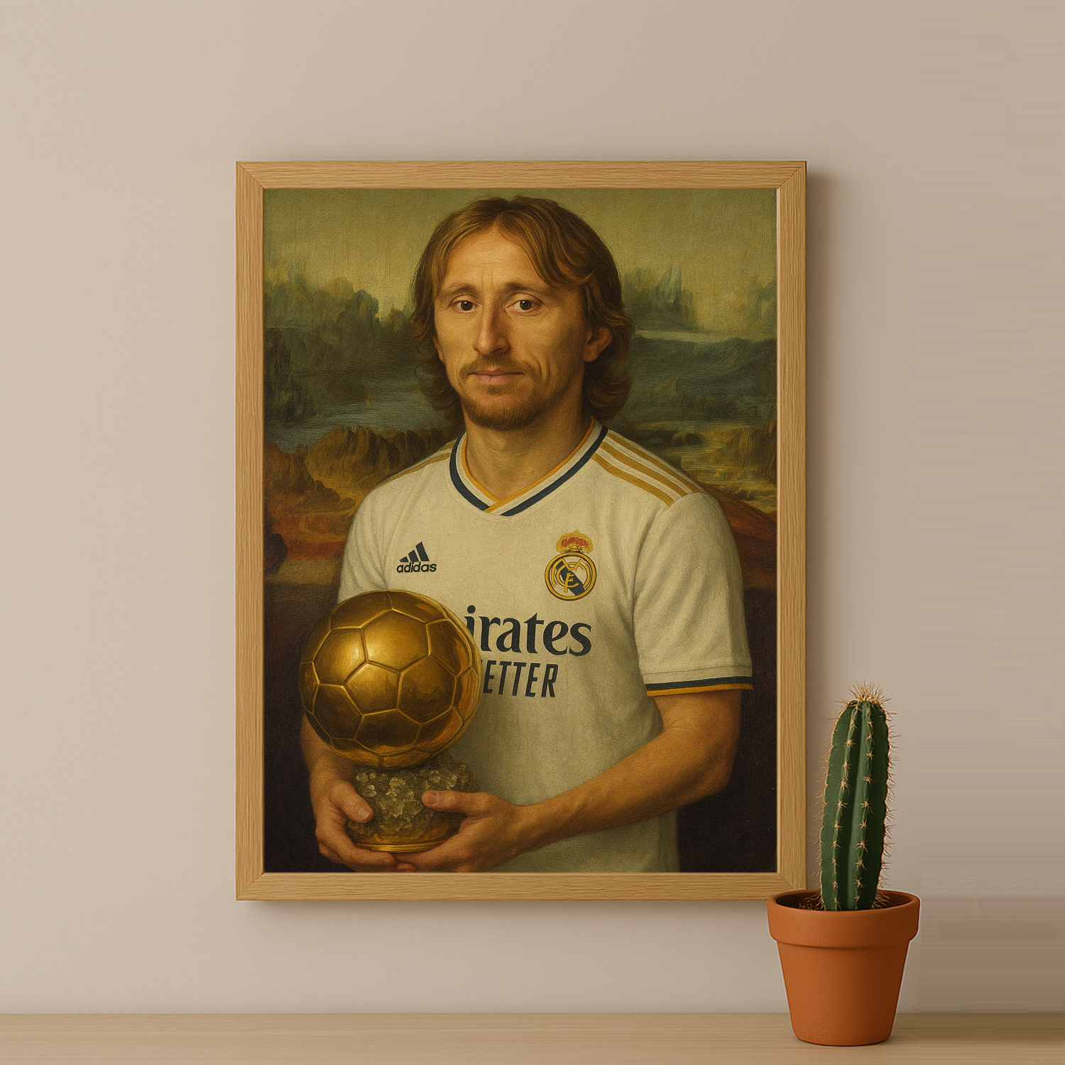 Faites entrer la magie du milieu de terrain avec ce poster Ballon d'Or de Luka Modrić ! Parfait pour les fans qui adorent la créativité et la finesse tactique. Laissez Modrić ensorceler vos murs avec son talent et ajouter une dose de charme footballistique à votre déco !