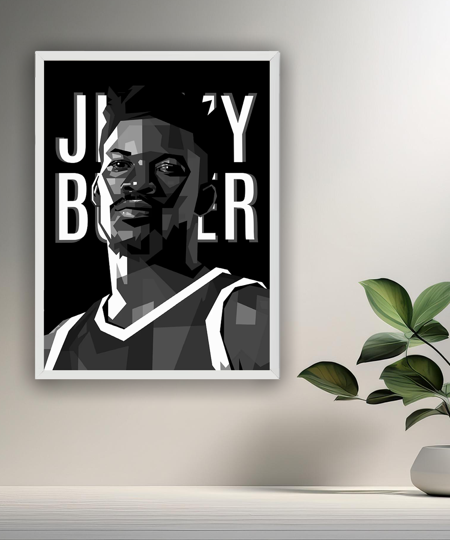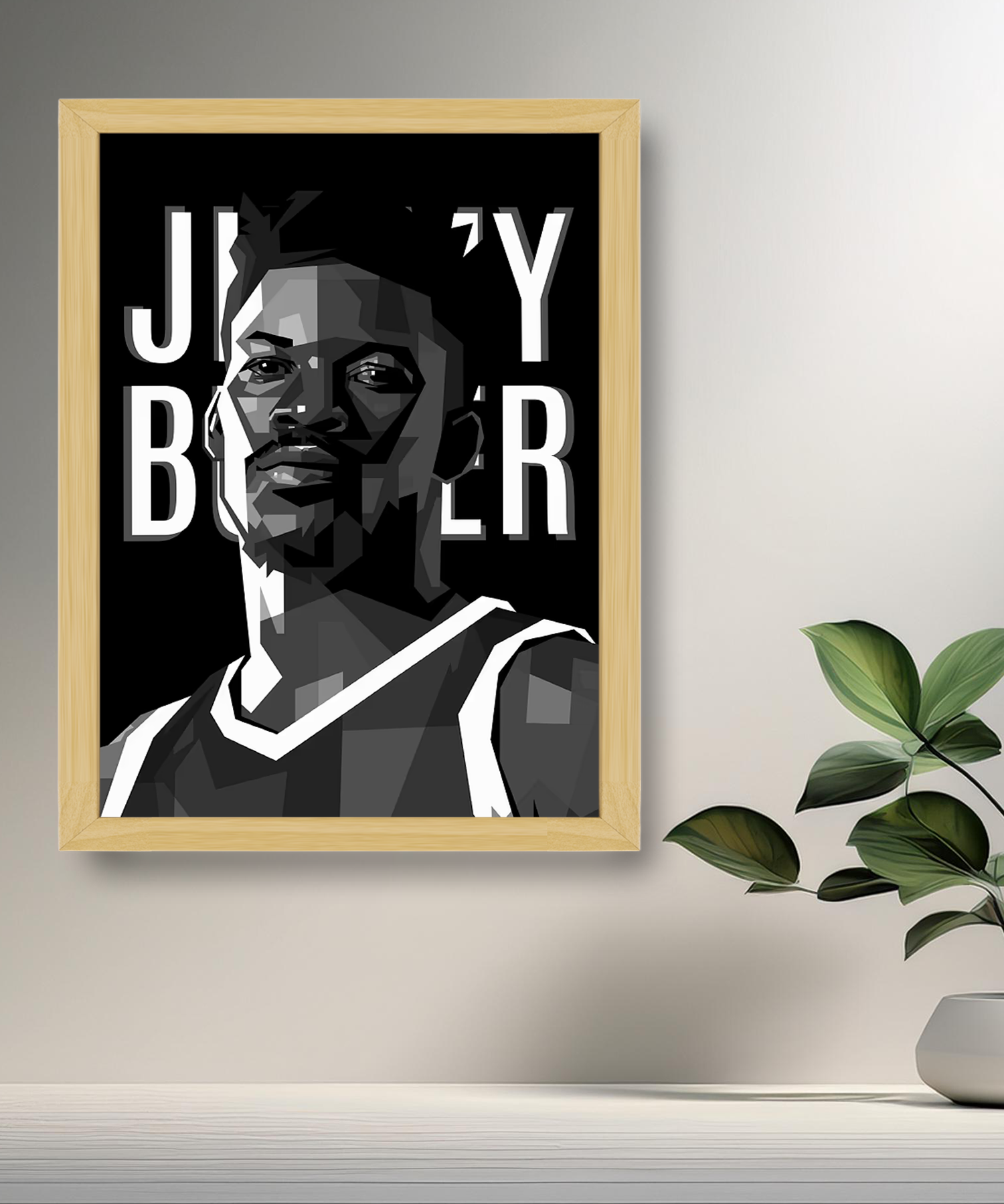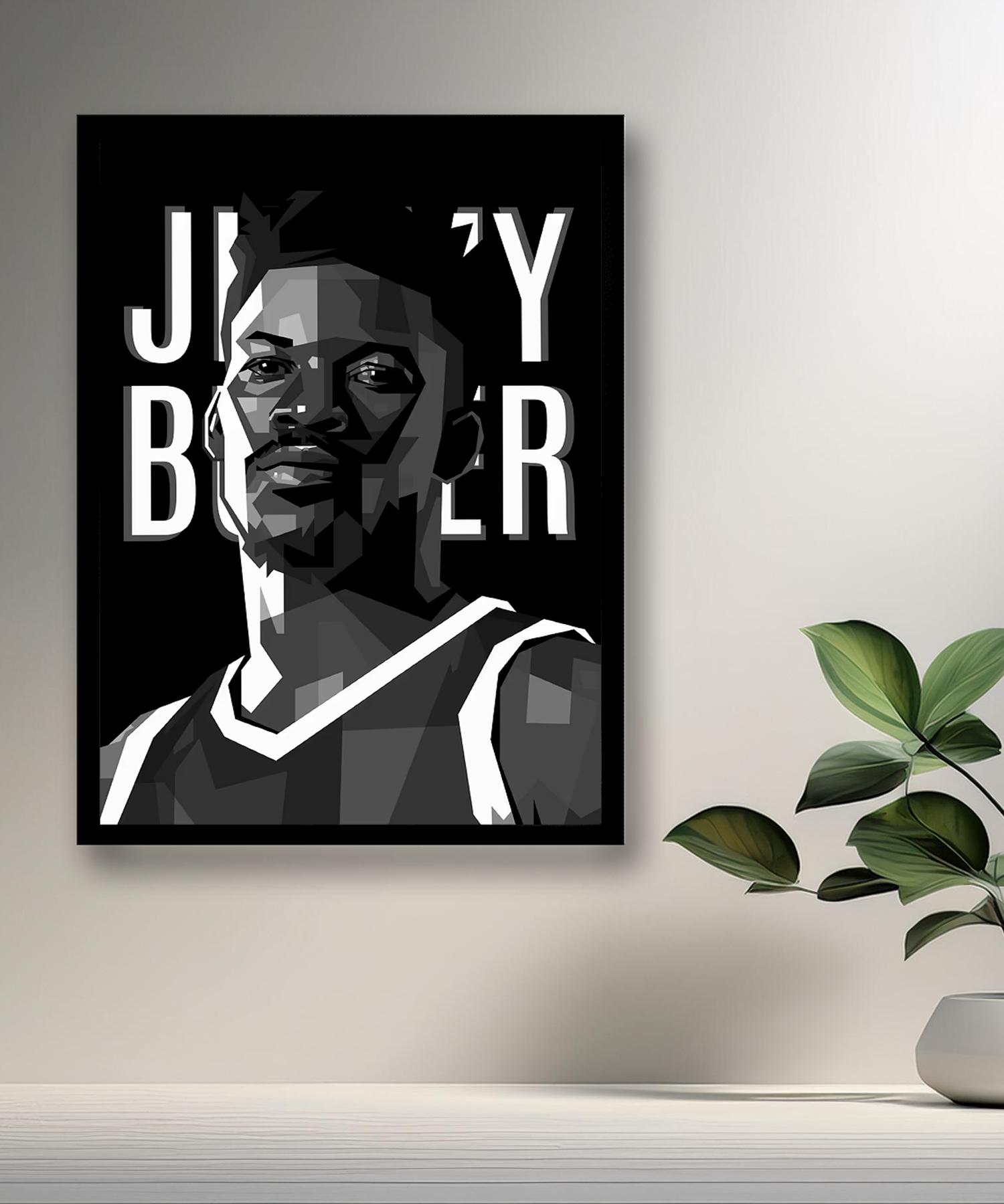 Ajoutez une Touche de Détermination à Votre Décor Ne manquez pas l’opportunité d’ajouter ce chef-d'œuvre mural à votre collection ou d’offrir ce cadeau inoubliable à un passionné de Jimmy Butler et du Miami Heat.