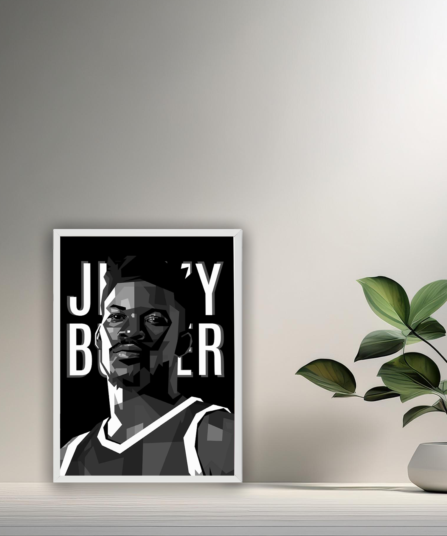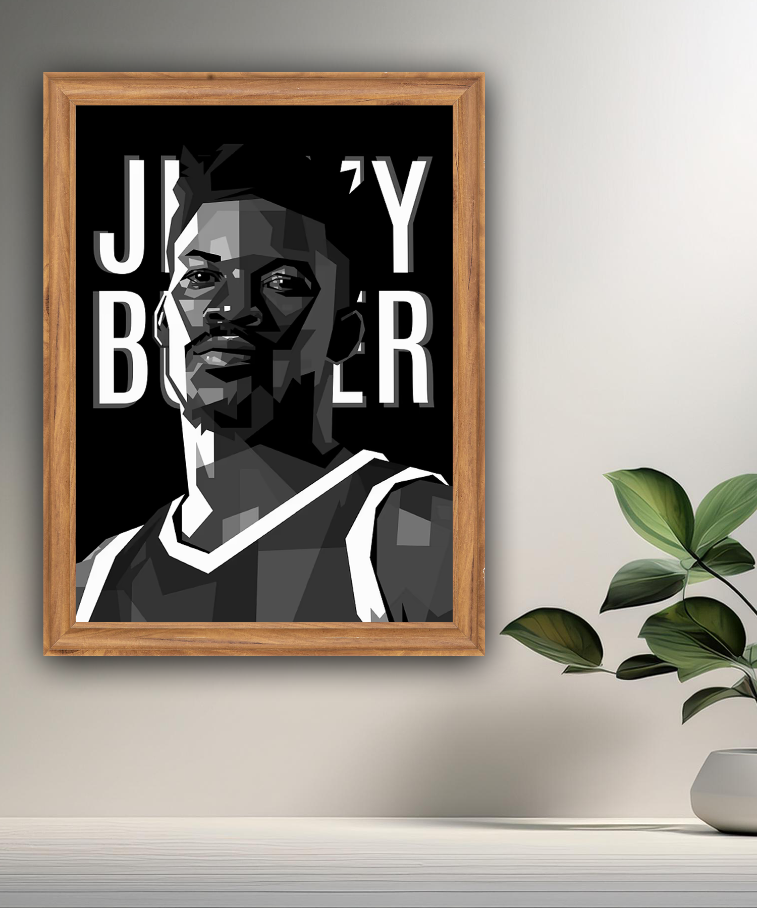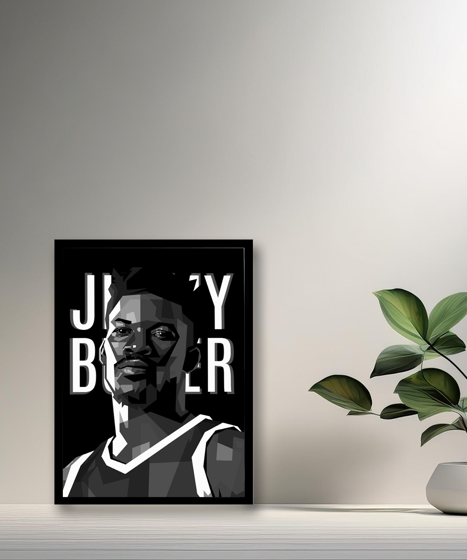 Ajoutez une Touche de Détermination à Votre Décor Ne manquez pas l’opportunité d’ajouter ce chef-d'œuvre mural à votre collection ou d’offrir ce cadeau inoubliable à un passionné de Jimmy Butler et du Miami Heat.