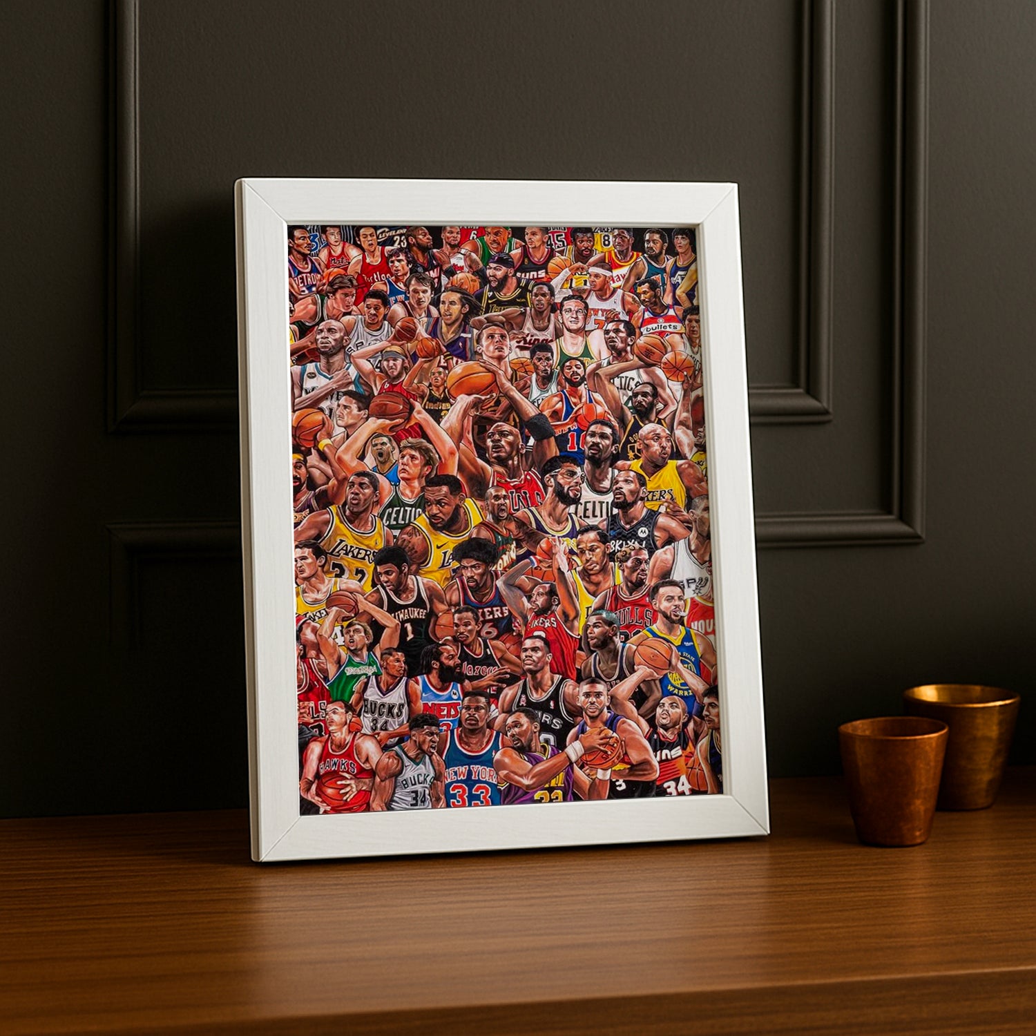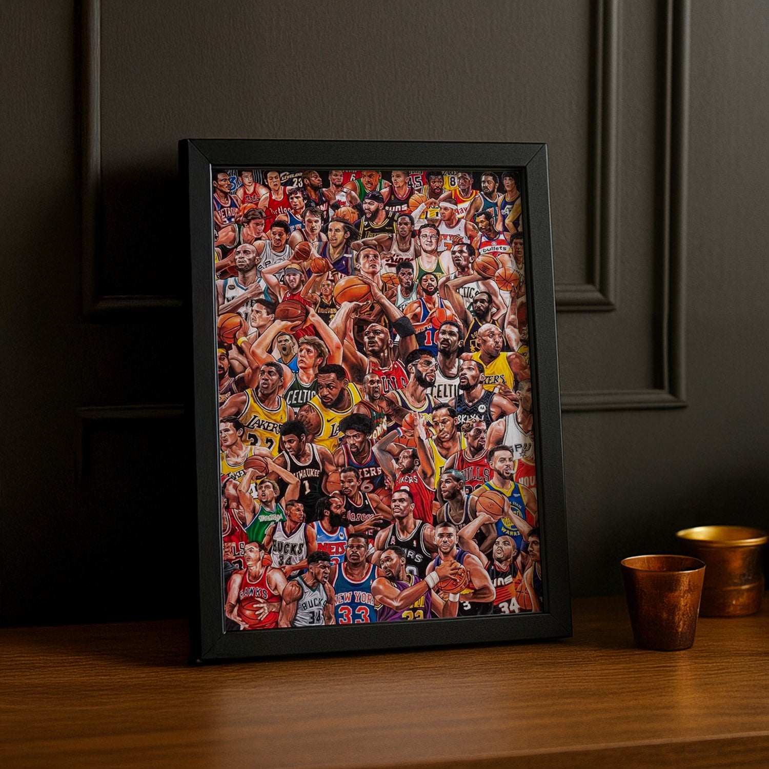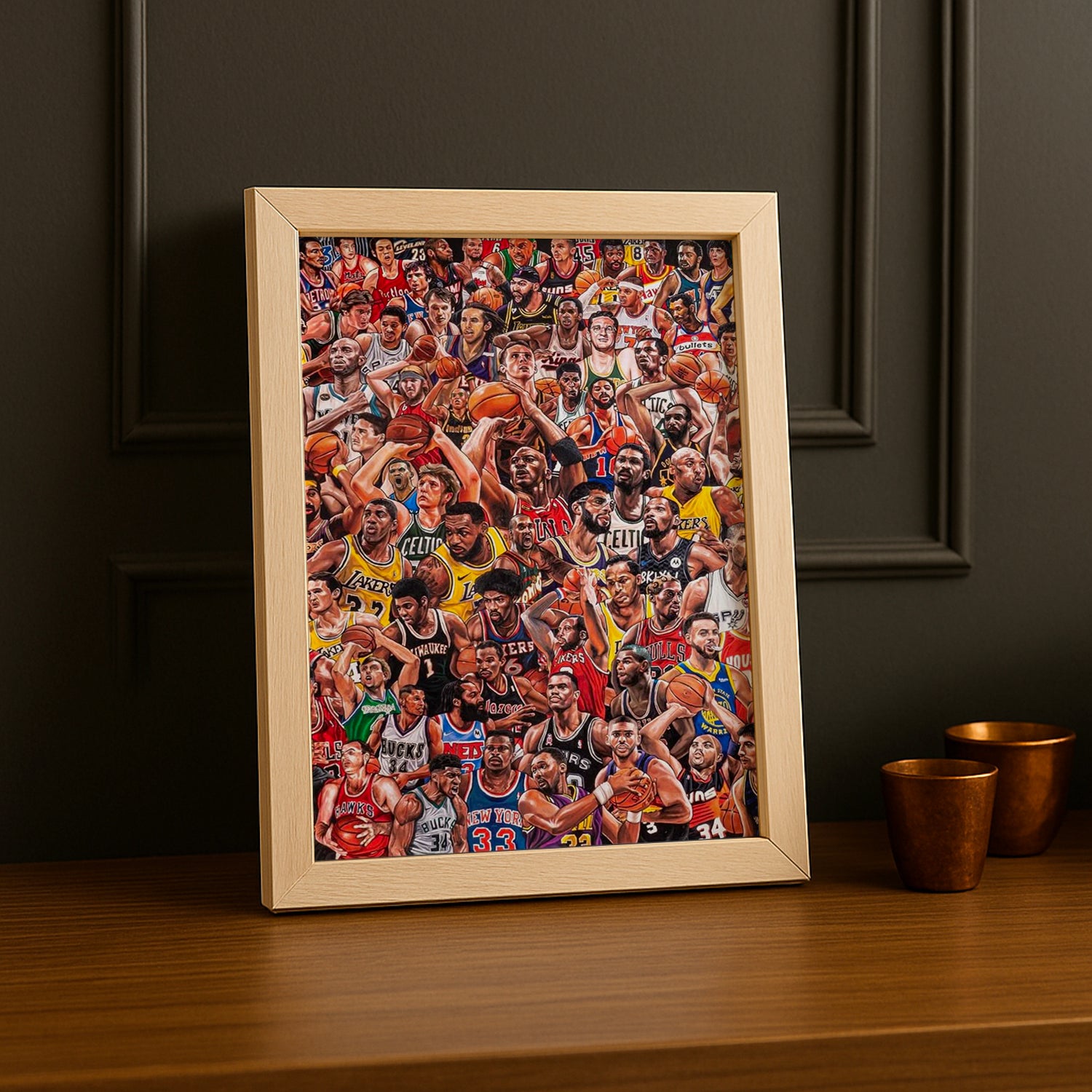 L'art du dessin rencontre le basketball ! Ce cadre photo NBA présente une illustration créative et originale qui capture l'essence du jeu avec un style artistique unique. Des traits expressifs et des compositions imaginatives qui transforment l'action du terrain en véritable création visuelle. Parfait pour les fans qui apprécient l'authenticité et la créativité brute. Un cadre qui ajoute une touche personnelle et bohème à votre décoration. Laissez l'art du basketball vous séduire !