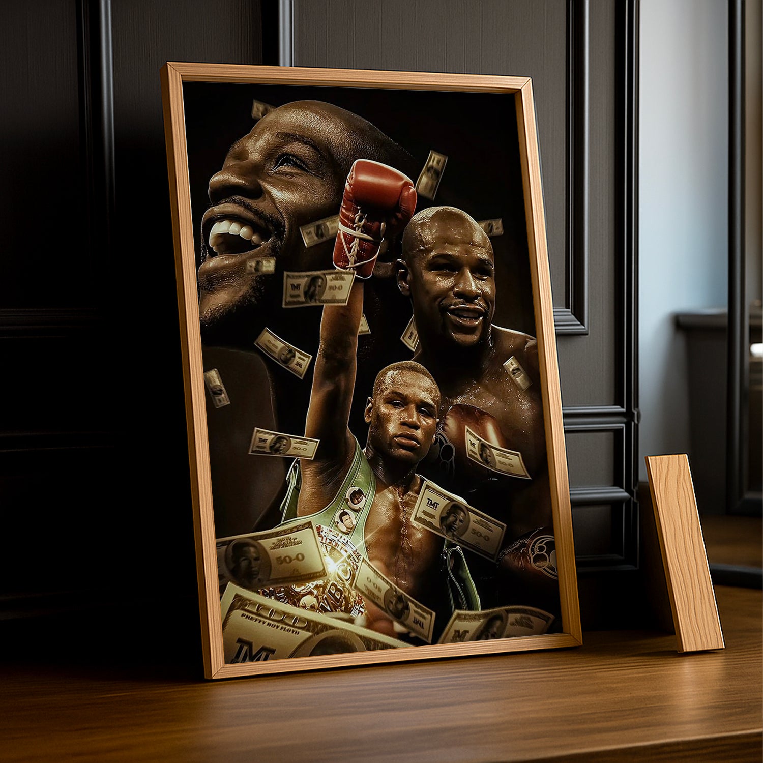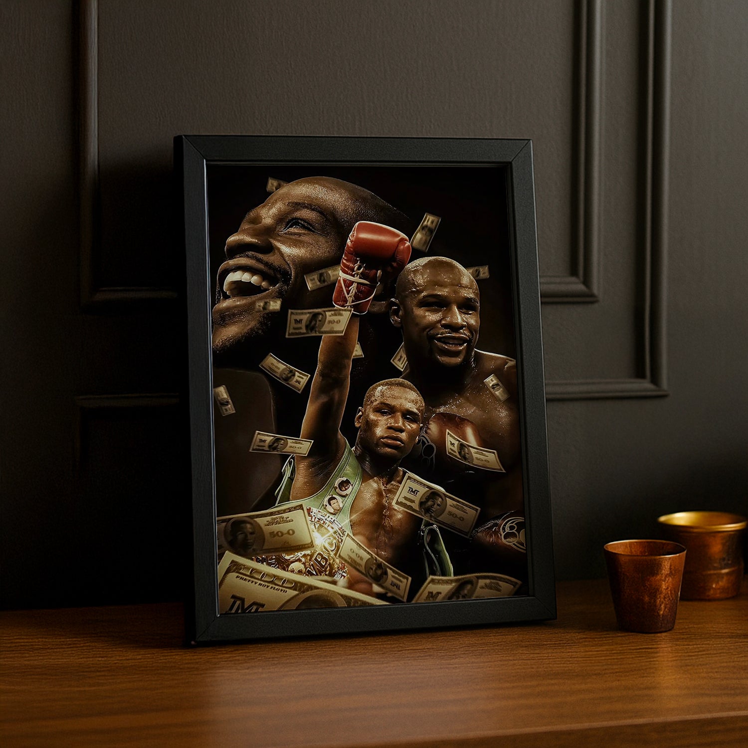 Célébrez le succès avec ce cadre photo Boxe Floyd Mayweather Dollars ! Un hommage ludique au champion qui a transformé la boxe en empire financier. Ce cadre capture l'ambition débordante et le style de vie flamboyant de Money Mayweather, celui qui a prouvé que la victoire dans le ring pouvait se traduire en victoire hors du ring. Accrochez-le dans votre chambre, bureau ou espace de vie pour une dose d'inspiration entrepreneuriale et de confiance inébranlable. Parfait pour ceux qui admirent la mentalité gagnante et reconnaissent que Floyd Mayweather a écrit le manuel du succès moderne !