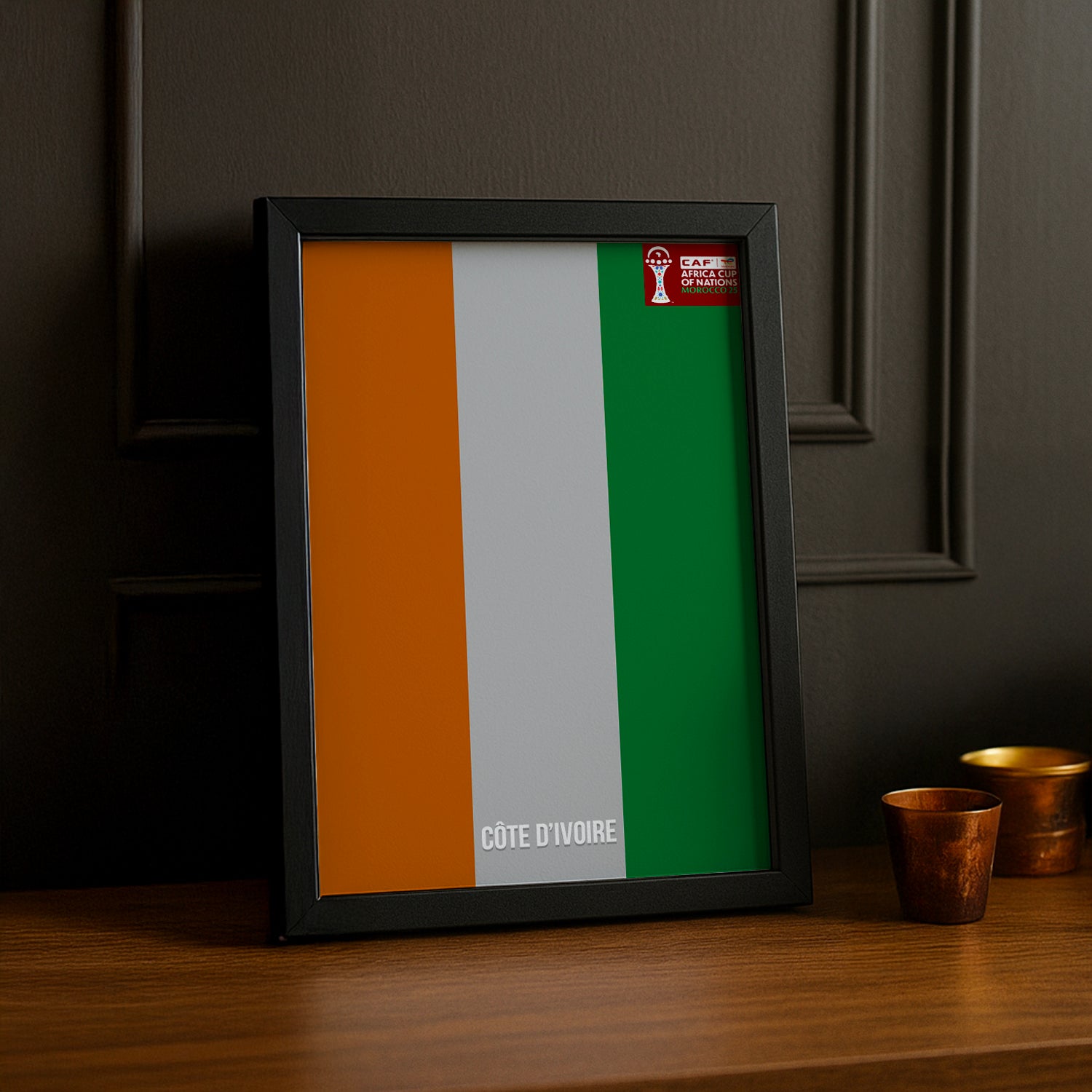 Célébrez les Éléphants avec ce cadre photo CAN 2025 ! L'accessoire incontournable pour les supporters ivoiriens qui veulent garder vivants les moments d'exception du tournoi. Encadrez votre cliché préféré du match, celui d'un but décisif ou votre selfie aux couleurs orange, blanc et vert – ce cadre transforme chaque image en déclaration de fierté. Son design moderne et captivant s'adapte à tous les intérieurs. À accrocher sans tarder pour prolonger l'aventure du CAN 2025 et afficher votre amour inconditionnel pour le football ivoirien !
