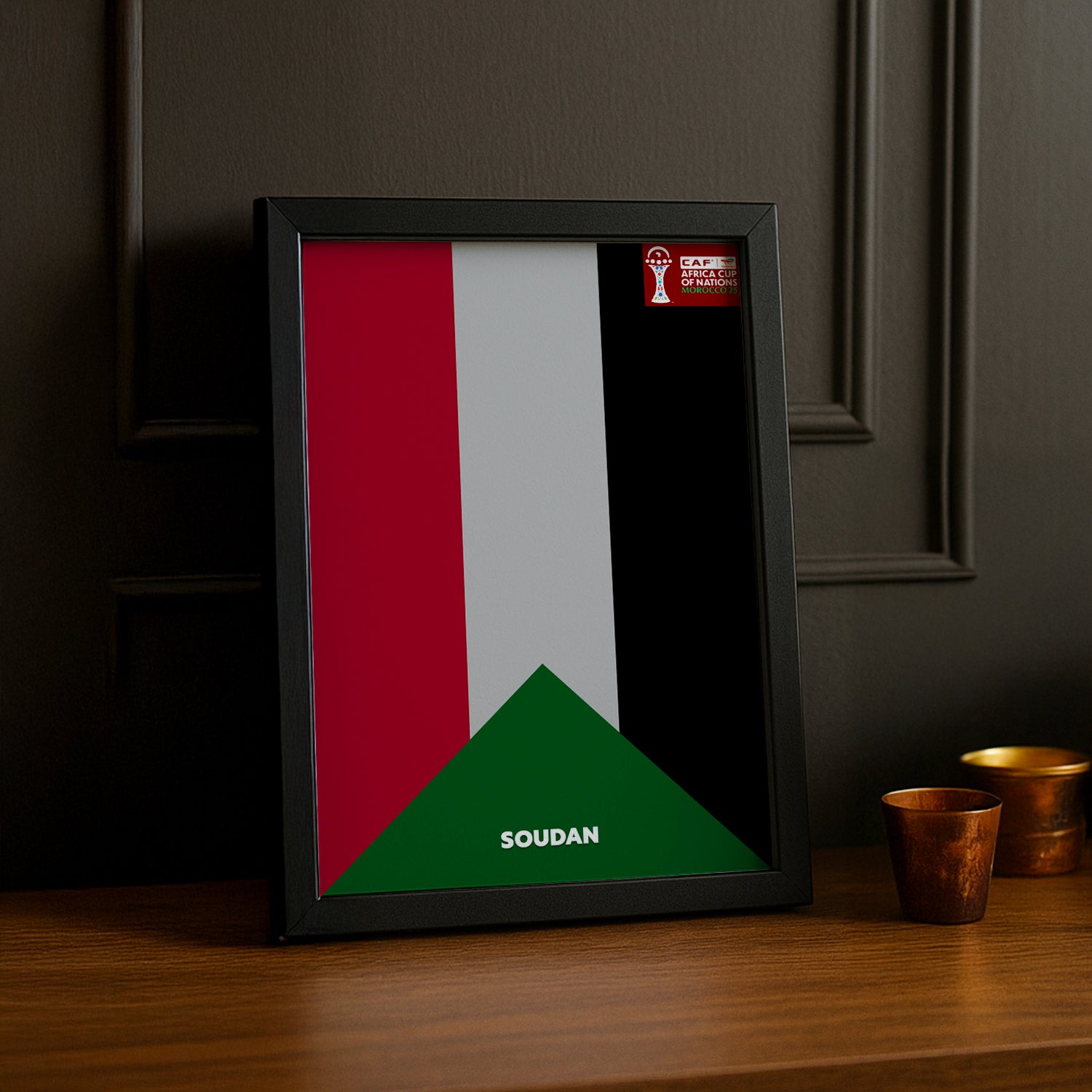 Mettez en avant les Faucons du Soudan avec ce cadre photo CAN 2025 ! Un accessoire parfait pour les supporters soudanais qui veulent immortaliser les instants magiques du tournoi. Encadrez votre photo du match inoubliable, celle d'une performance impressionnante ou votre cliché en tenue nationale – ce cadre transforme chaque image en trophée personnel. Son design vibrant et authentique capture l'énergie du football soudanais. À accrocher dans votre salon, votre chambre ou votre bureau pour garder vivante la passion du CAN 2025 et célébrer votre équipe !