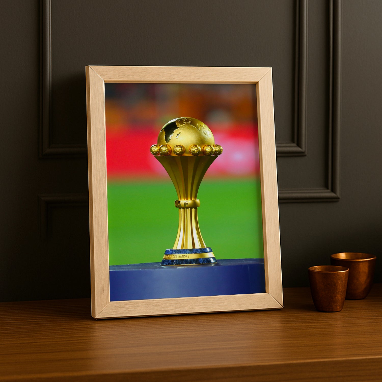 Immortalisez le symbole ultime de la victoire avec ce cadre photo CAN 2025 - Trophée ! L'accessoire incontournable pour tous les supporters qui veulent célébrer la grandeur du tournoi. Affichez votre photo du trophée soulevé, celle du moment de gloire suprême ou votre cliché aux côtés de la coupe – ce cadre transforme chaque image en déclaration de passion. Son design prestigieux et authentique capture l'essence de la victoire africaine. À accrocher fièrement pour immortaliser à jamais l'émotion, la fierté et la magie du CAN 2025 !
