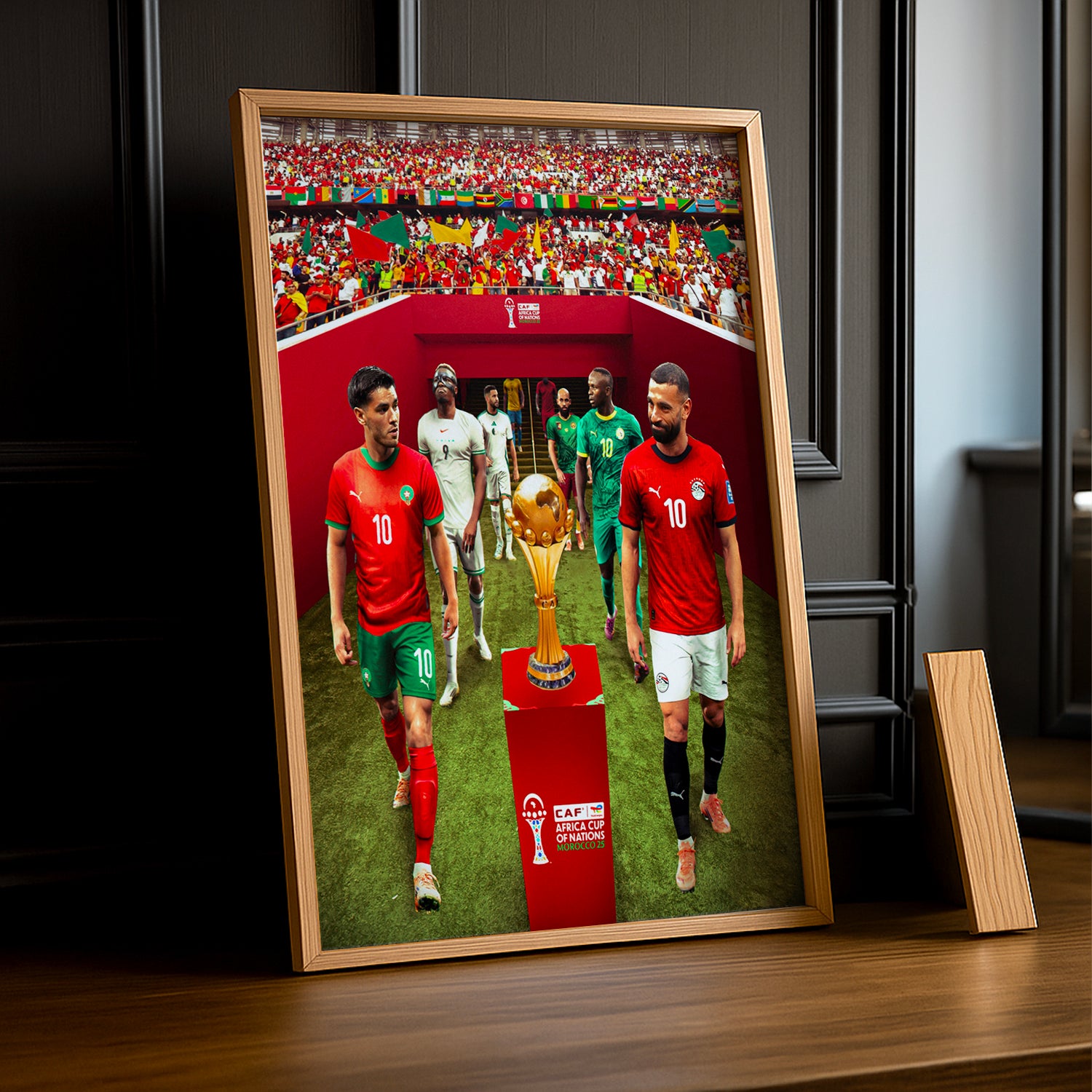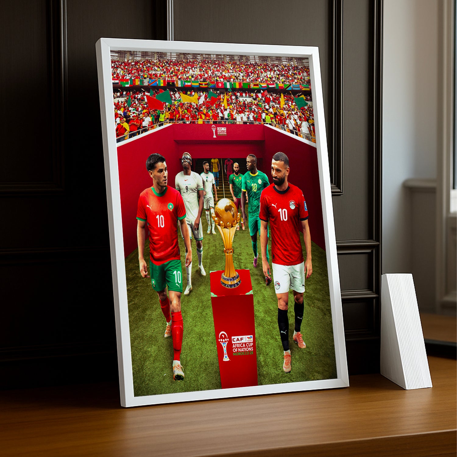 Immortalisez vos moments de gloire avec ce cadre photo dédié à la Coupe d'Afrique des nations 2025 ! Parfait pour afficher le portrait de votre joueur préféré ou votre plus beau souvenir du tournoi, ce cadre allie style et passion du football africain. Son design épuré met en valeur vos photos tout en célébrant l'événement sportif de l'année. À accrocher fièrement dans votre salon, votre chambre ou votre bureau pour raviver l'émotion de chaque match. Un accessoire incontournable pour les vrais supporters !