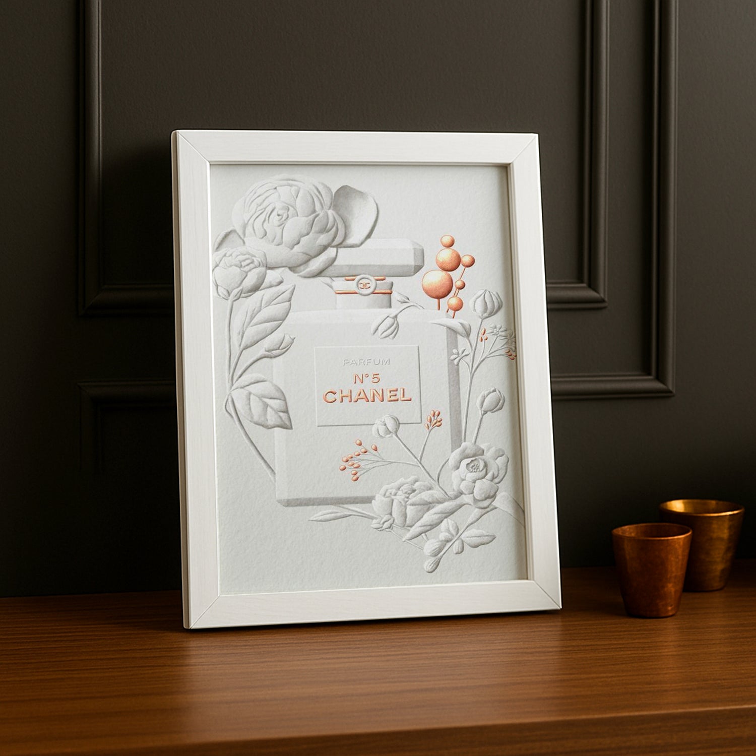 Découvrez ce cadre photo Chanel N°5 Full White x Gold, où la pureté du blanc rencontre l'éclat de l'or pour un résultat absolument captivant. Chaque photo devient une déclaration de style, encadrée par l'élégance intemporelle de la maison Chanel. Idéal pour mettre en lumière vos moments les plus mémorables avec une touche de sophistication dorée. Un accessoire qui transforme vos souvenirs en pièces de décoration dignes d'un magazine de mode.