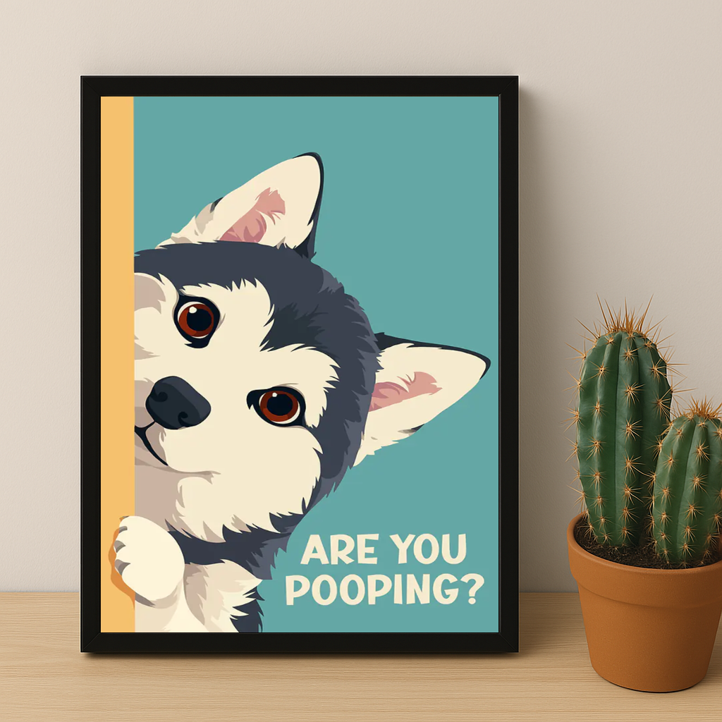 Ajoutez une touche d’humour et de malice à votre déco avec ce poster "Chien Husky Are You Pooping ?". Ce design espiègle met en scène le regard expressif du Husky, parfait pour faire sourire et apporter une ambiance légère à votre intérieur. Un clin d’œil amusant pour tous les fans de cette race pleine de caractère !