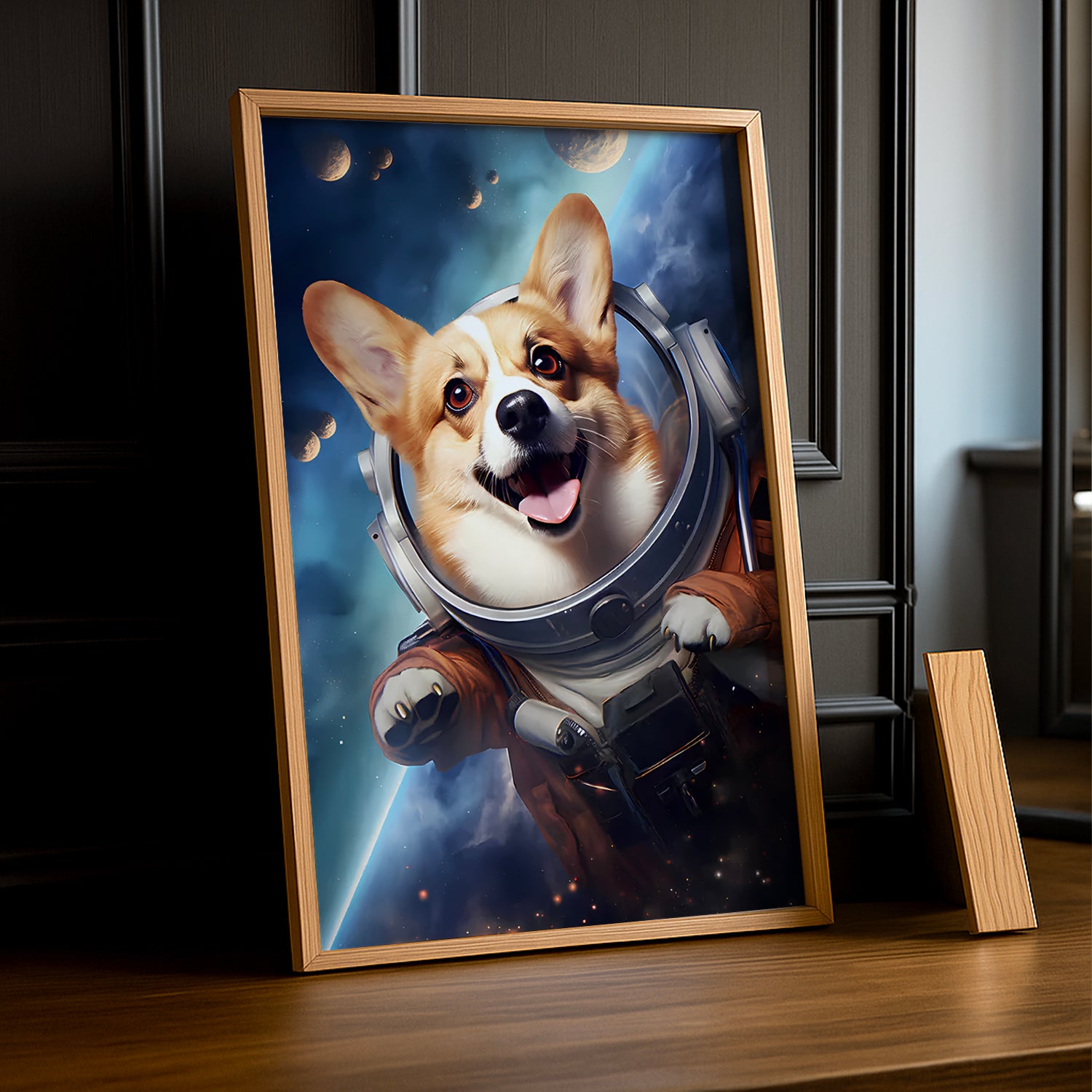 Embarquez pour une aventure cosmique avec ce poster "Chien Space". Ce design amusant et original met en scène un chien prêt à explorer l’univers, parfait pour apporter une touche de fantaisie et de bonne humeur à votre décoration. Idéal pour les rêveurs et les amoureux des chiens !