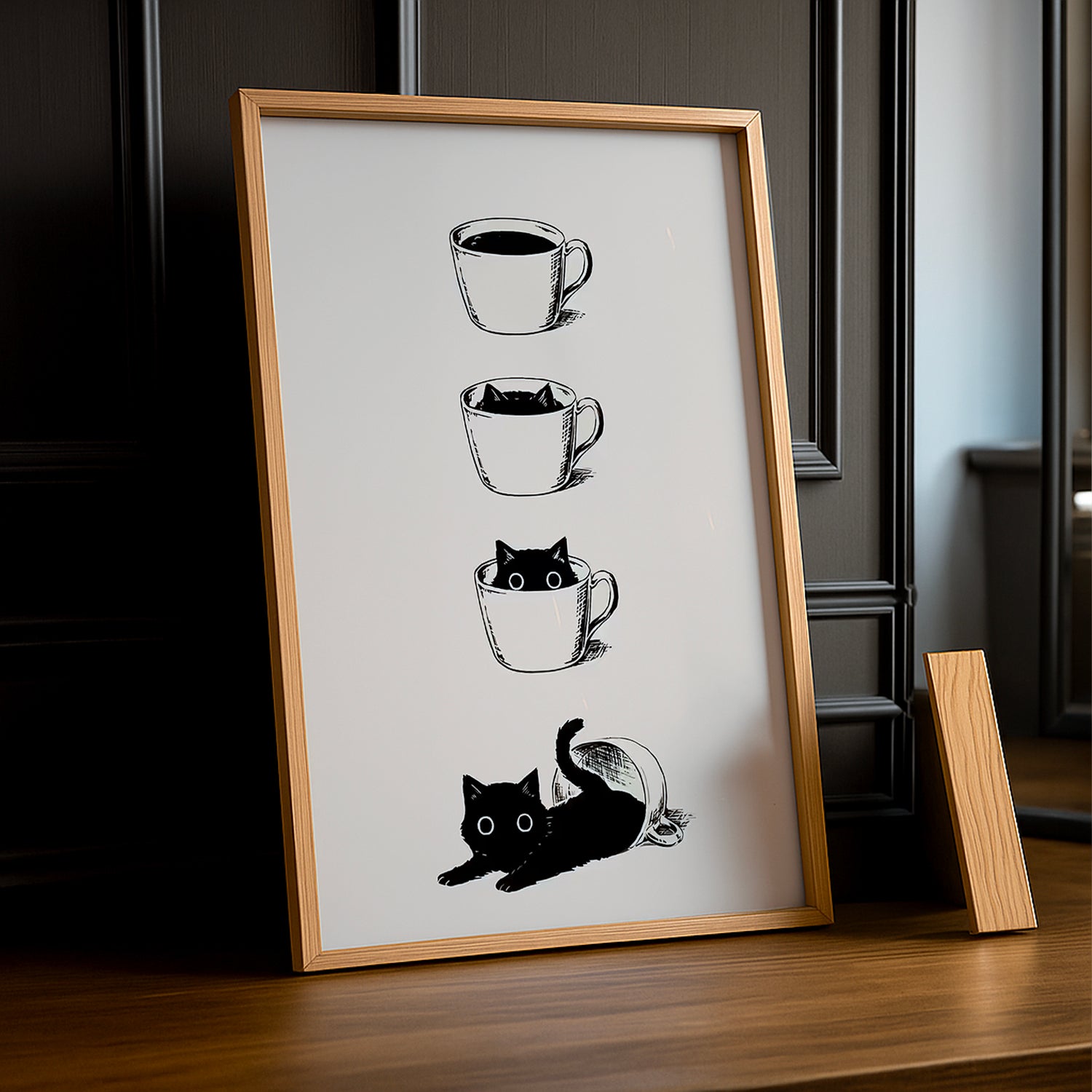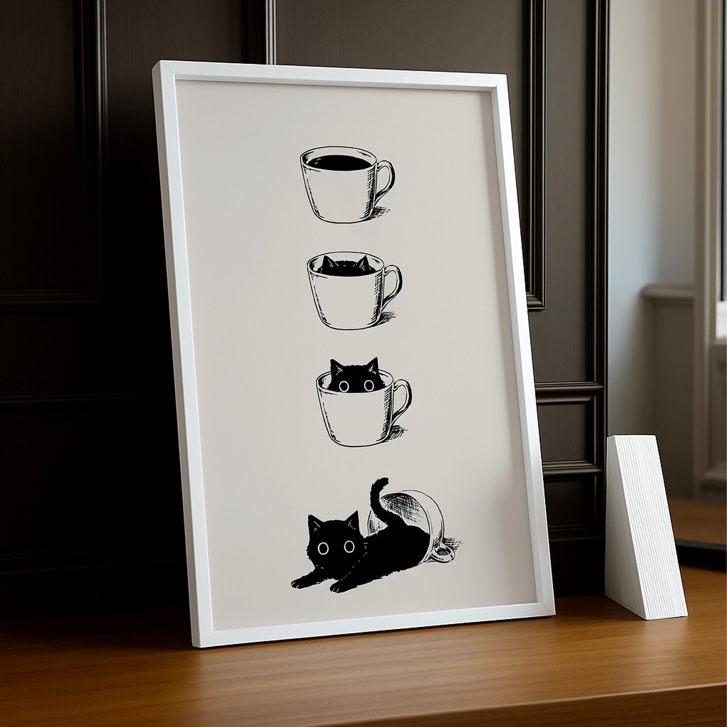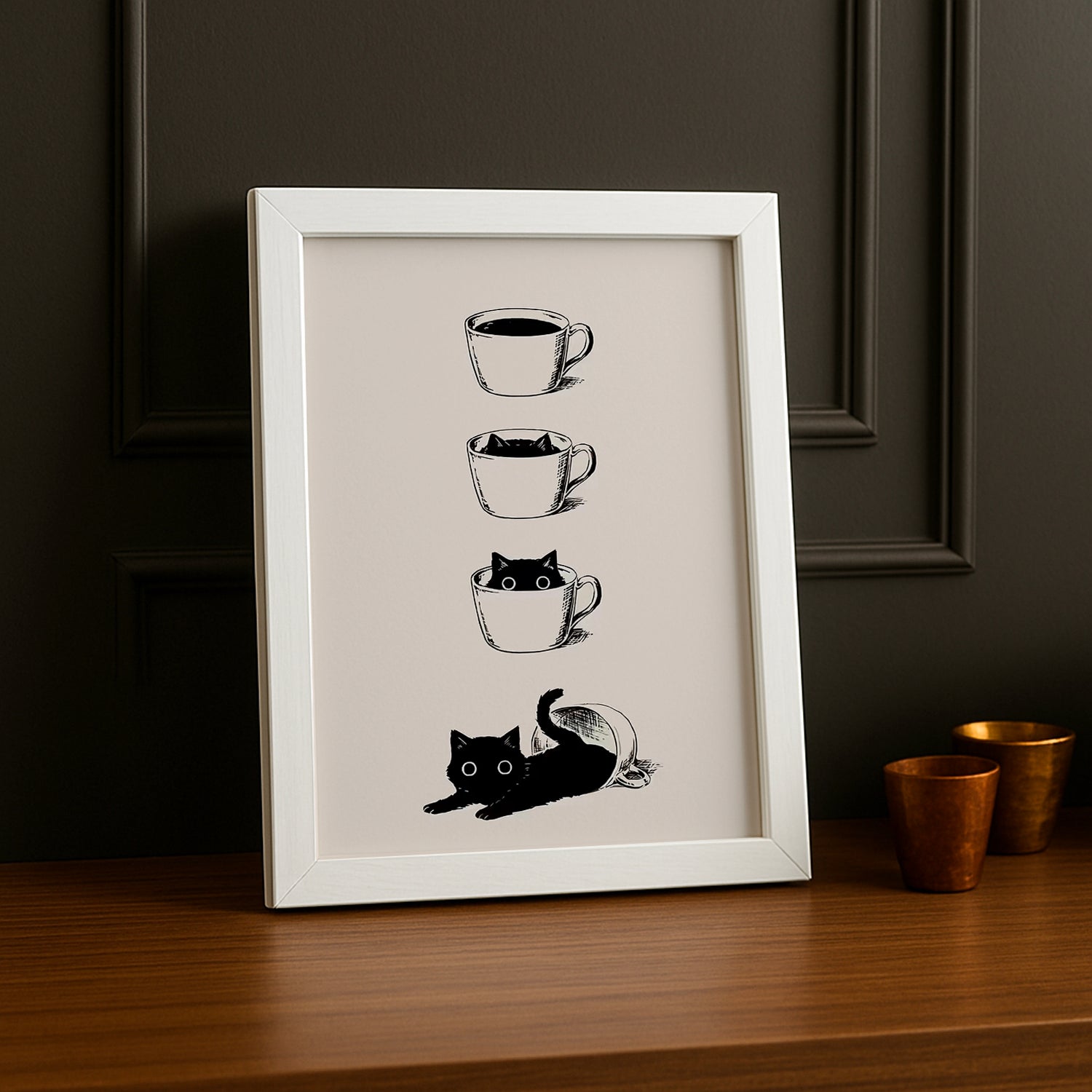 Un cadre photo adorable qui réunit les deux grandes amours : les chats et le café ! Avec son design mignon et espiègle, ce cadre capture la complicité parfaite entre les félidés paresseux et les amateurs de caféine. Parfait pour les amoureux des animaux qui ne peuvent pas commencer leur journée sans leur tasse de café et leurs ronrons préférés. Mettez en valeur vos plus beaux souvenirs avec vos compagnons à quatre pattes dans ce cadre plein de charme. Idéal pour la cuisine, la chambre ou le salon, c'est une décoration qui fait sourire au quotidien. Un cadeau délicieux pour tous ceux qui vivent en harmonie avec leurs chats et leur addiction au café !