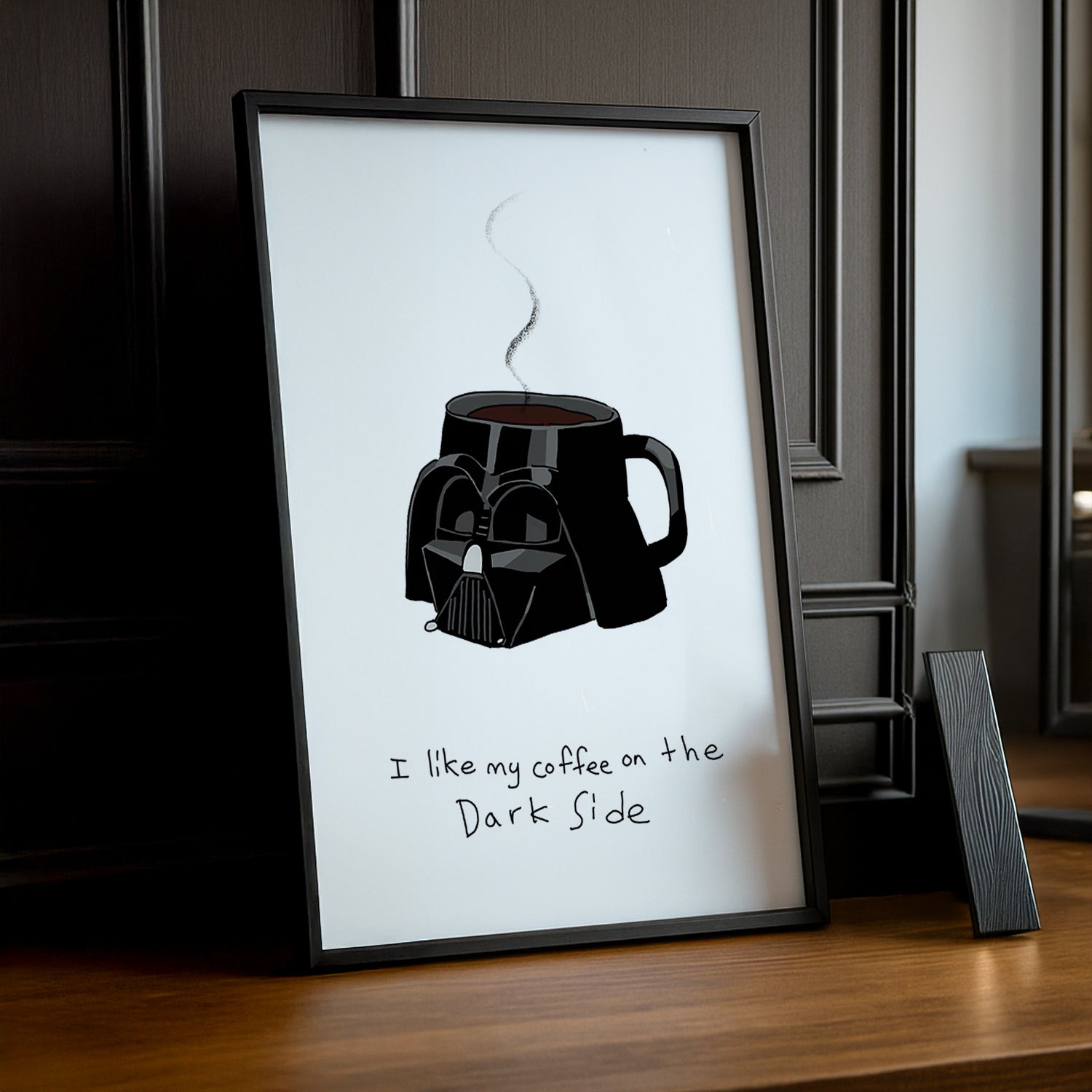 Bienvenue du côté obscur du café ! Ce cadre photo joue avec l'univers des amateurs de café noir intense et sans compromis. Parfait pour ceux qui préfèrent leur café fort, pur et sans détour, ce cadre célèbre cette préférence avec humour et mystère. Avec son ton espiègle et un brin rebelle, il capture l'essence des vrais connaisseurs qui ne transigent jamais sur la qualité. Affichez vos souvenirs préférés dans ce cadre au caractère affirmé. Idéal pour la cuisine, le bureau ou votre espace personnel. Un cadeau original pour tous les amateurs de café noir qui embrassent fièrement leur côté sombre et caféiné !
