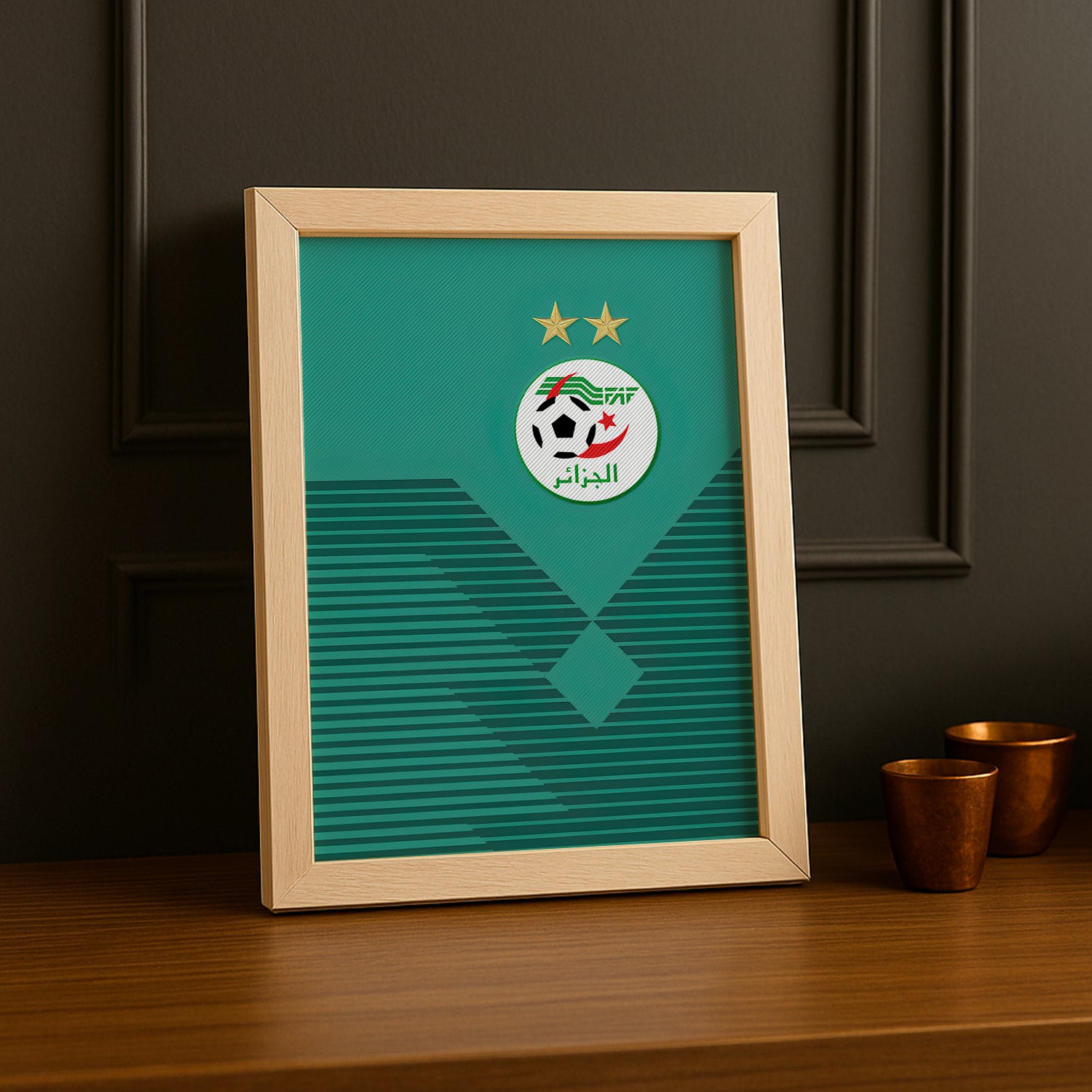 Faites vibrer votre passion pour le foot avec ce cadre photo de l’équipe d’Algérie ! Plein d’énergie et de bonne humeur, il célèbre les exploits de vos héros du ballon rond tout en apportant une touche ludique à votre déco. Parfait pour encourager l’équipe depuis votre salon avec style et fun !