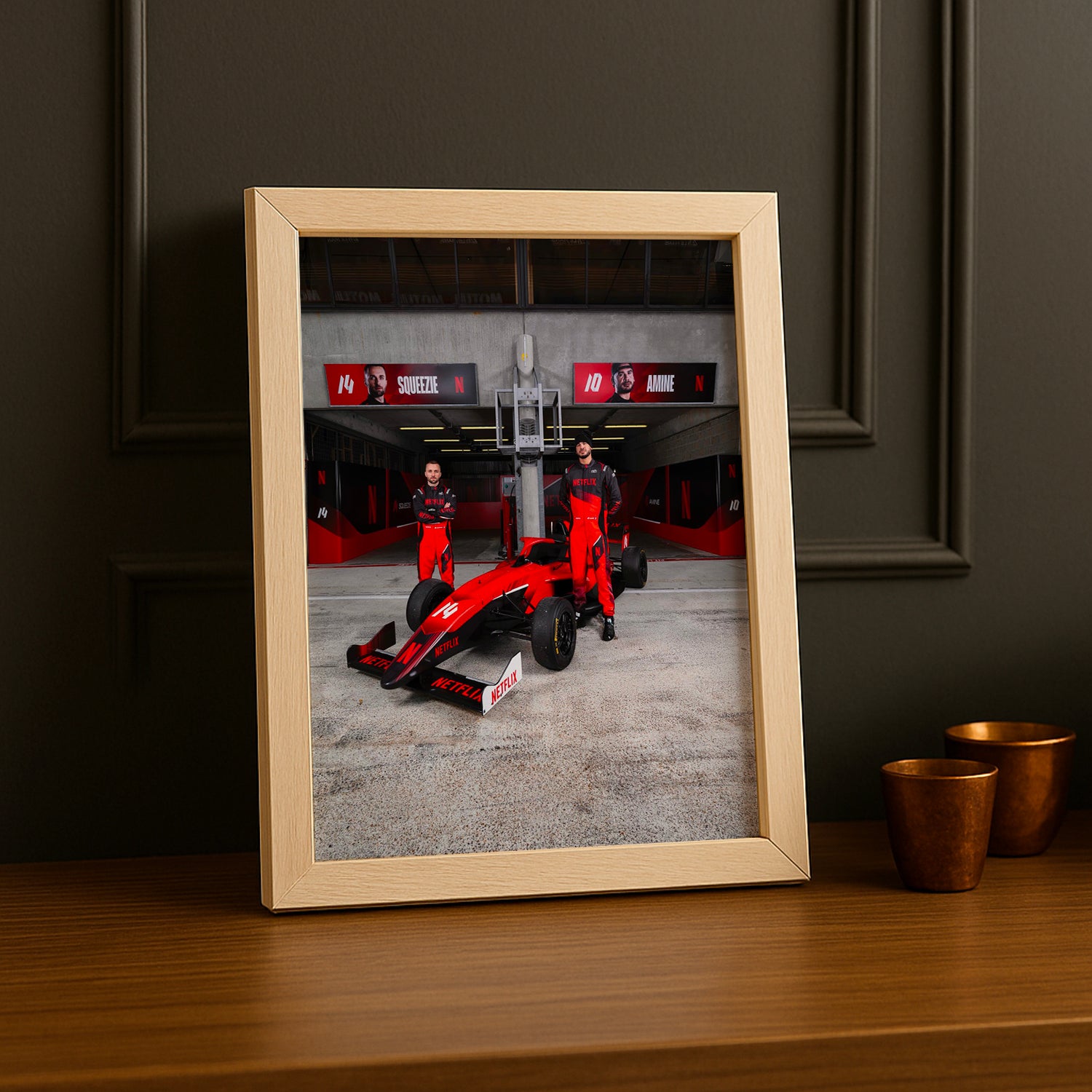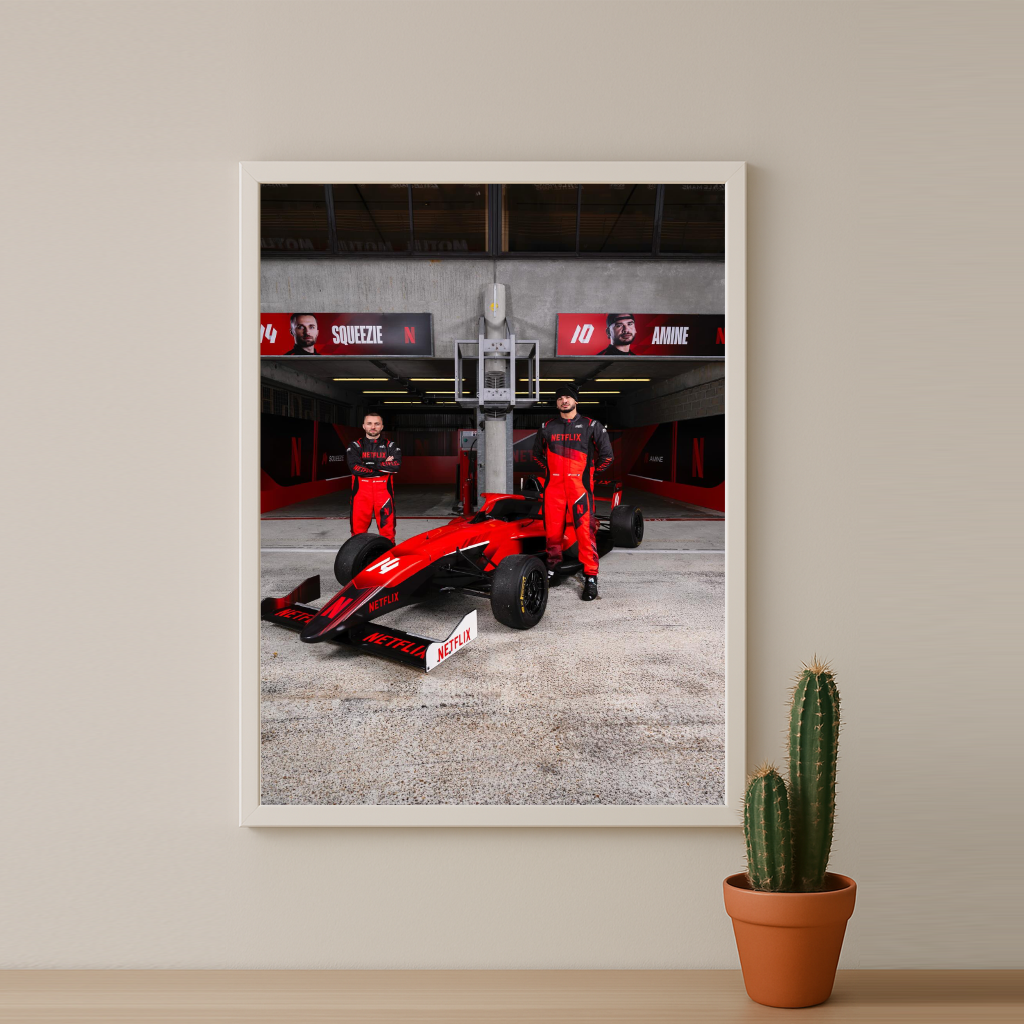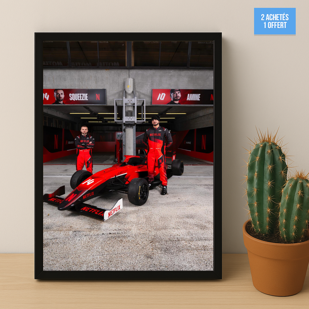 Apportez une explosion de fun à votre mur avec le poster encadré GP Explorer - Écurie Netflix Squeezie x AmineMaTue ! Ce design coloré et plein d’énergie, protégé par un cadre élégant, réveillera votre déco avec style et bonne humeur. Parfait pour les fans qui veulent afficher leur passion avec une touche décalée et pleine de vie.