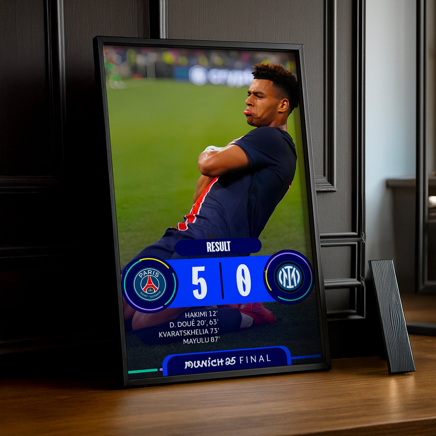 Immortalisez le talent de Désiré Doué avec ce cadre photo spécial PSG Ligue des champions ! Ajoutez une dose d'excitation parisienne à votre collection de souvenirs footballistiques. Ce cadre capture l'énergie et la fougue du jeune prodige sous les couleurs du Paris Saint-Germain. Pour les vrais supporters qui rêvent en rouge et bleu ! Ici c'est Paris !