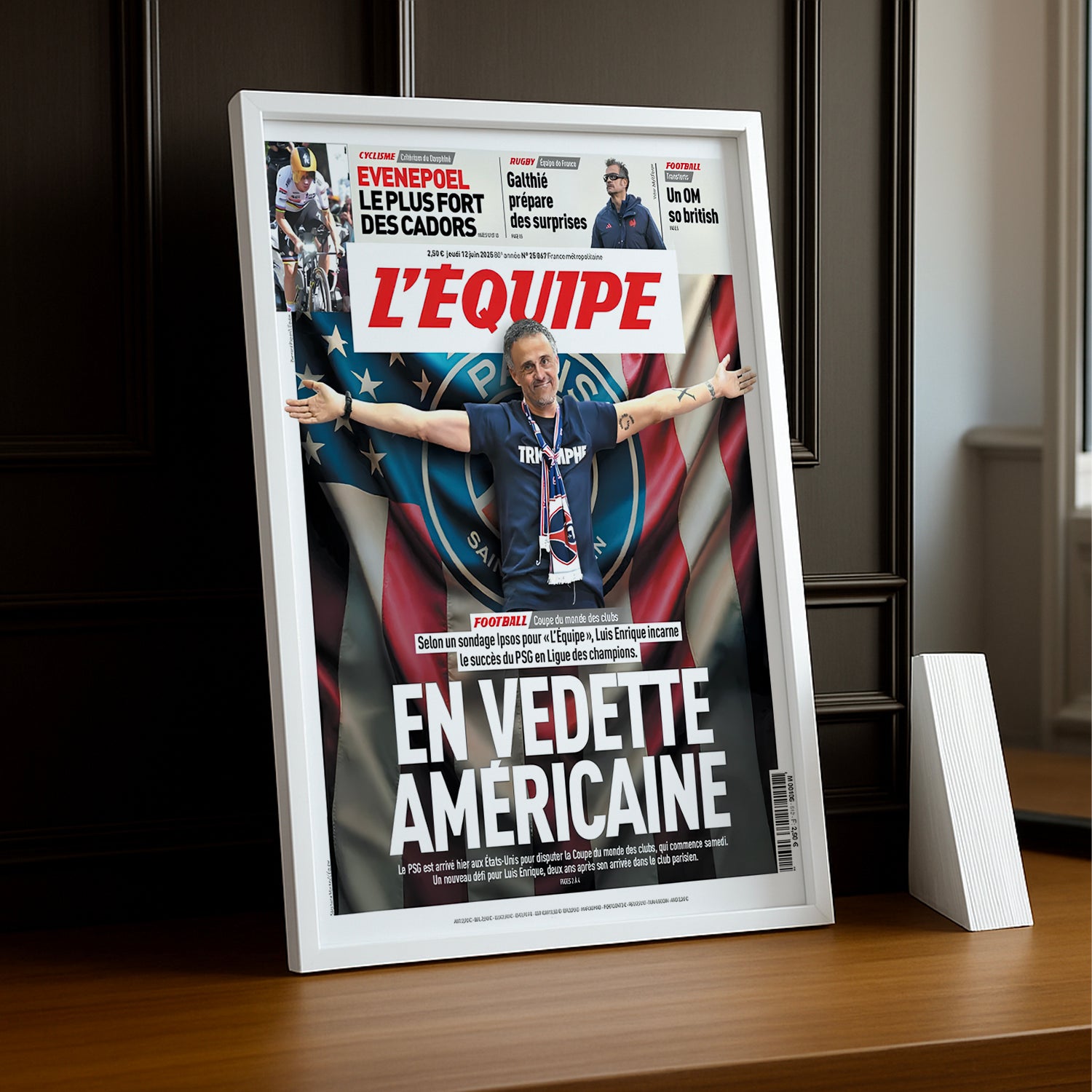 Mettez en scène vos meilleurs souvenirs avec le cadre photo L'Equipe Paris Saint-Germain journal ! Ce cadre unique capture l’énergie et la passion du club, parfait pour afficher vos moments forts comme une une de journal. Ajoutez une touche ludique et sportive à votre intérieur tout en célébrant votre amour pour le PSG. Un must-have pour tous les fans qui veulent garder leurs exploits préférés sous les projecteurs !