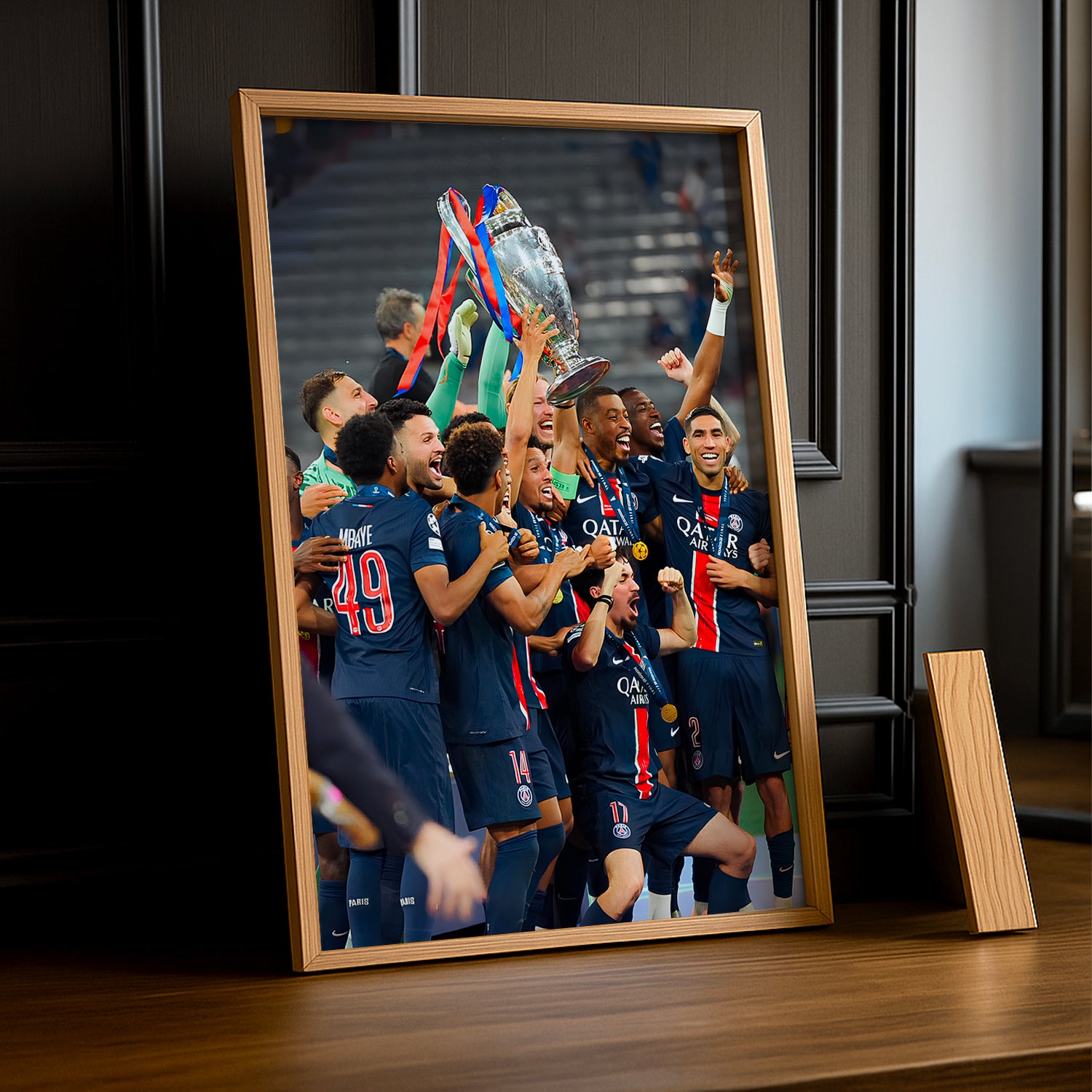 Revivez l’euphorie des grands moments avec le cadre photo Paris Saint-Germain Célébration LDC ! Parfait pour immortaliser vos souvenirs de victoire en Ligue des Champions, ce cadre apporte une touche festive et pleine d’énergie à votre déco. Que ce soit une photo de joie partagée ou un instant de triomphe, il transforme chaque image en une fête visuelle. Ajoutez une dose de fun et de fierté à votre intérieur avec ce cadre qui respire la passion du PSG !