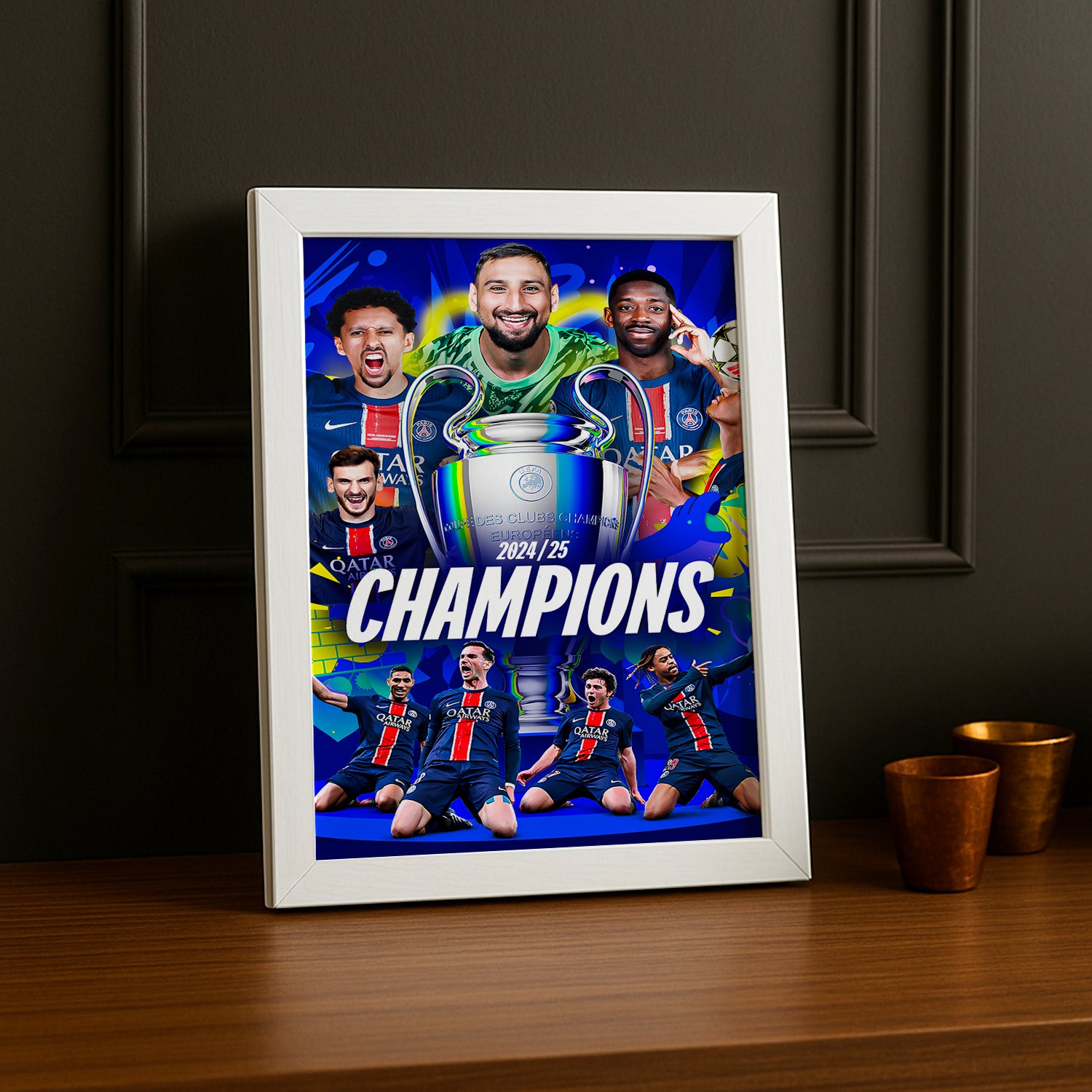 Affichez fièrement les couleurs du Paris Saint-Germain avec ce cadre photo spécial Champions d'Europe ! Revivez les moments magiques de gloire européenne chaque jour dans votre intérieur. Un must pour tous les supporters parisiens qui veulent garder l'esprit de victoire à portée de regard. Ici c'est Paris, et maintenant c'est aussi chez vous !