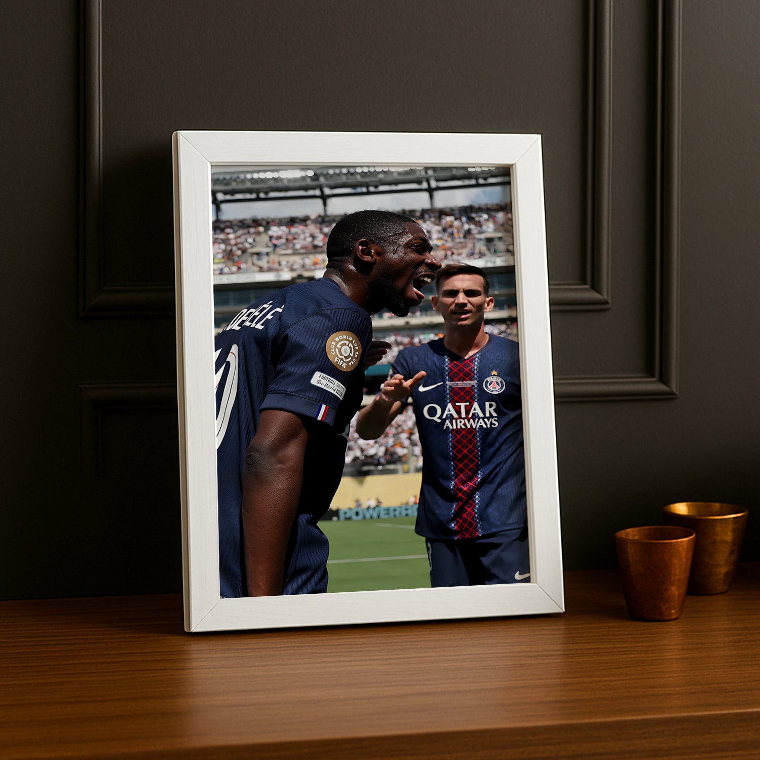 Revivez la joie et l’énergie de Dembélé avec cette illustration célébrant ses moments forts au Paris Saint-Germain. Parfaite pour les supporters qui veulent afficher leur passion avec une touche de fun et de dynamisme. Un must-have pour tous les fans qui aiment vibrer au rythme du jeu !