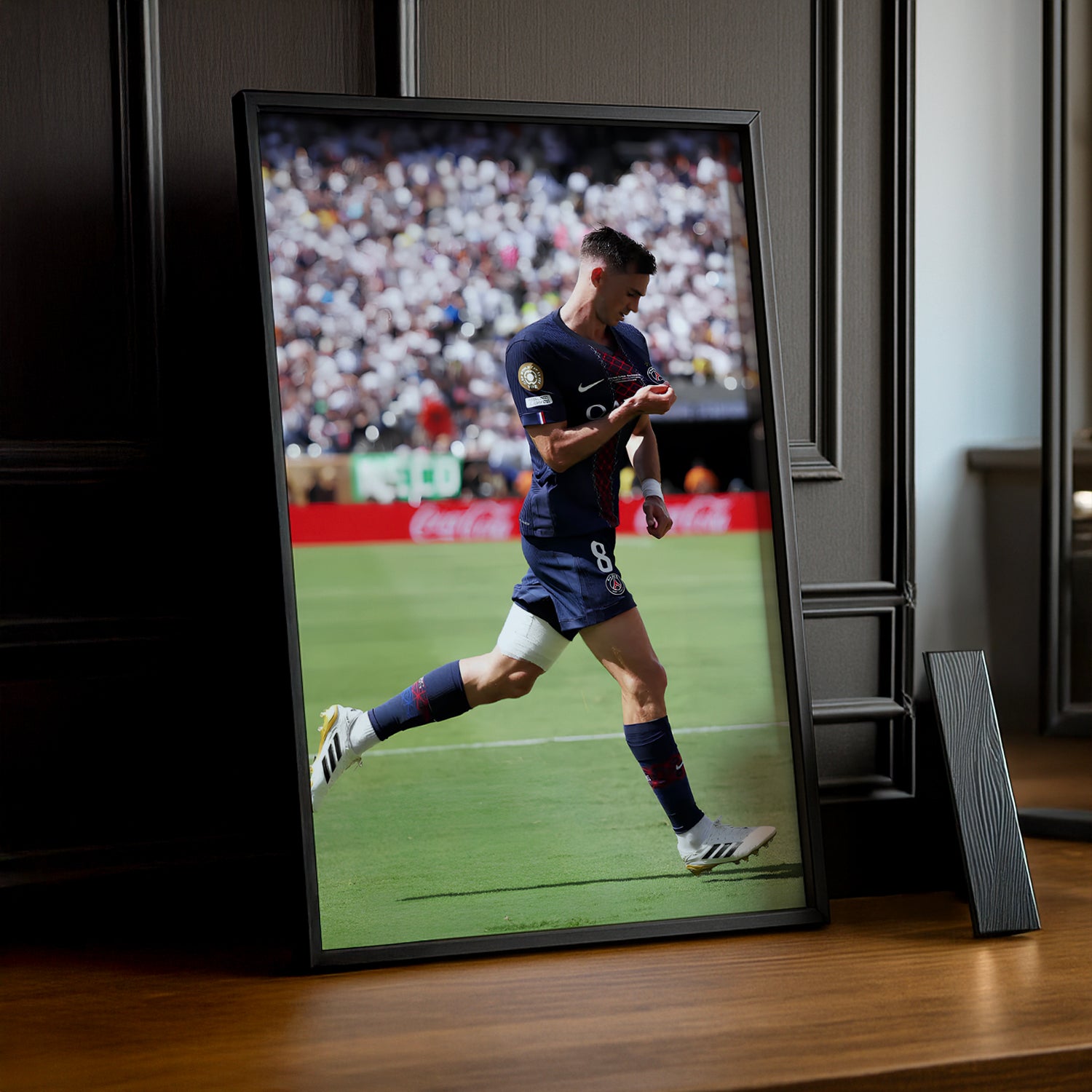 Apportez une touche de fraîcheur et de bonne humeur à votre déco avec cette illustration pleine de vie de Fabián Ruiz, joueur du Paris Saint-Germain. Parfaite pour les fans qui veulent célébrer leur passion avec un clin d’œil amusant et coloré. Un must pour égayer votre espace avec style et fun !