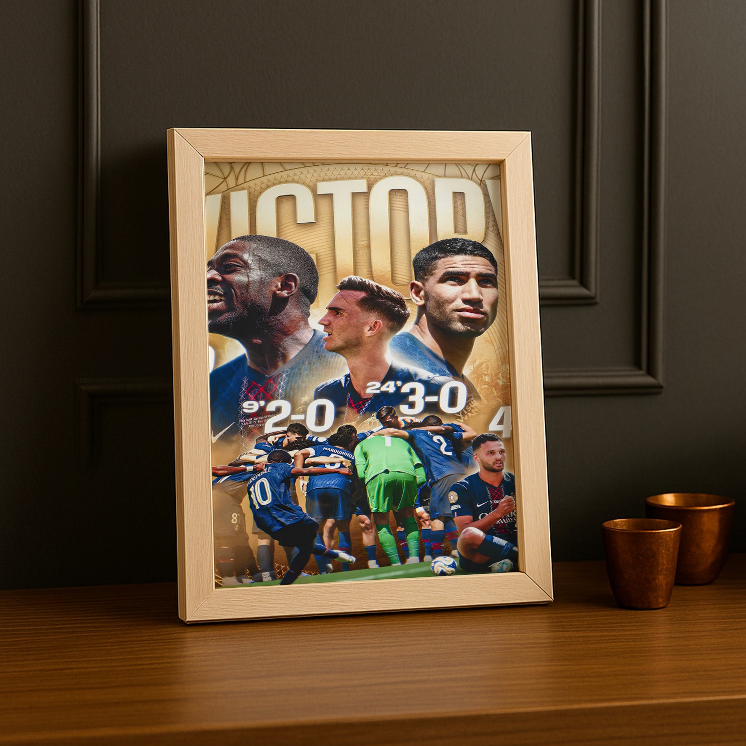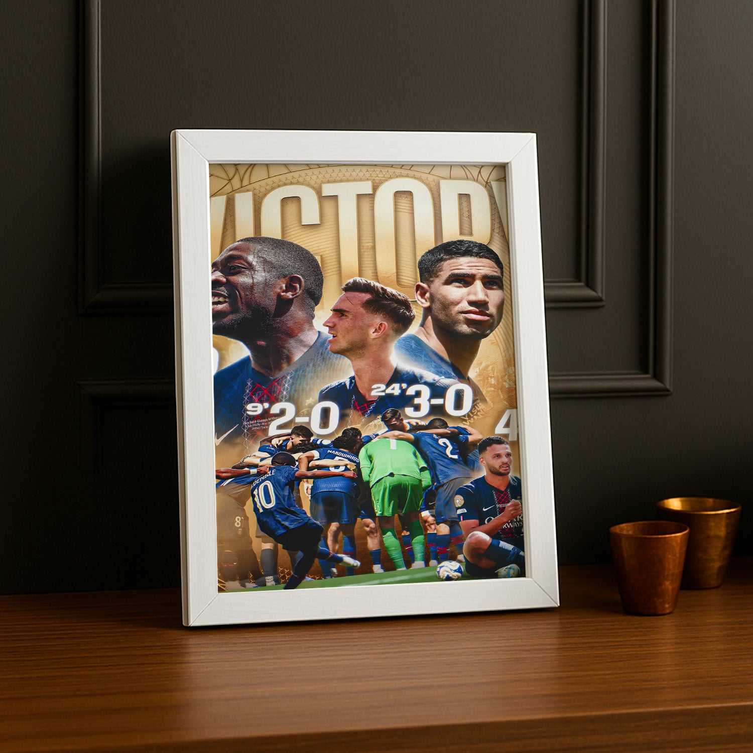 Immortalisez la victoire mémorable du Paris Saint-Germain contre le Real Madrid avec ce cadre photo plein de peps ! Parfait pour les fans qui veulent afficher fièrement ce moment de triomphe avec une touche de fun et de bonne humeur. Un souvenir joyeux à accrocher chez vous ou à offrir !
