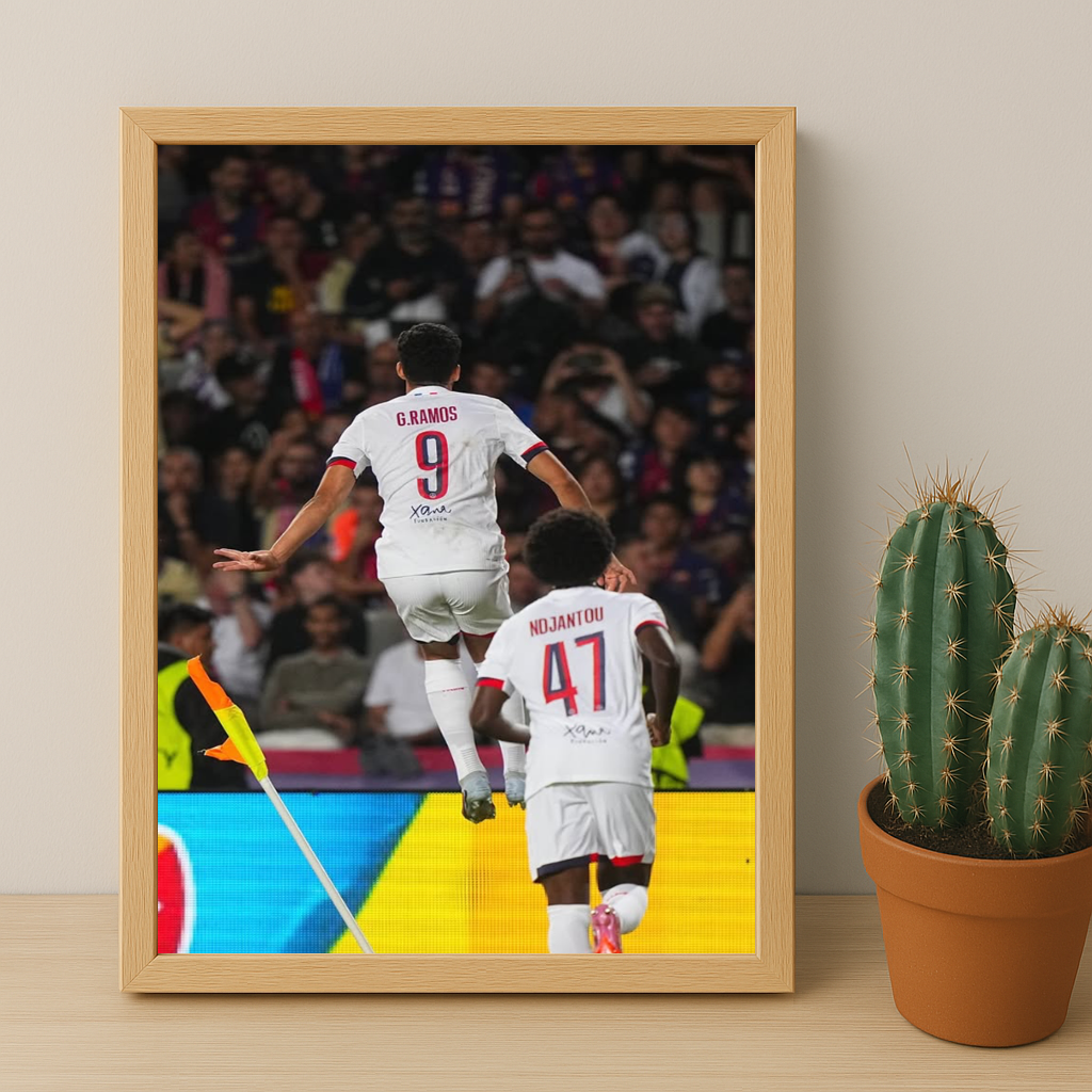 Donnez du caractère à votre déco avec ce poster encadré de G. Ramos au Paris Saint-Germain ! Parfait pour les fans qui aiment la puissance et le style sur le terrain, ce poster apporte une touche de fun et d’énergie à votre mur, célébrant un défenseur légendaire avec une attitude inimitable.