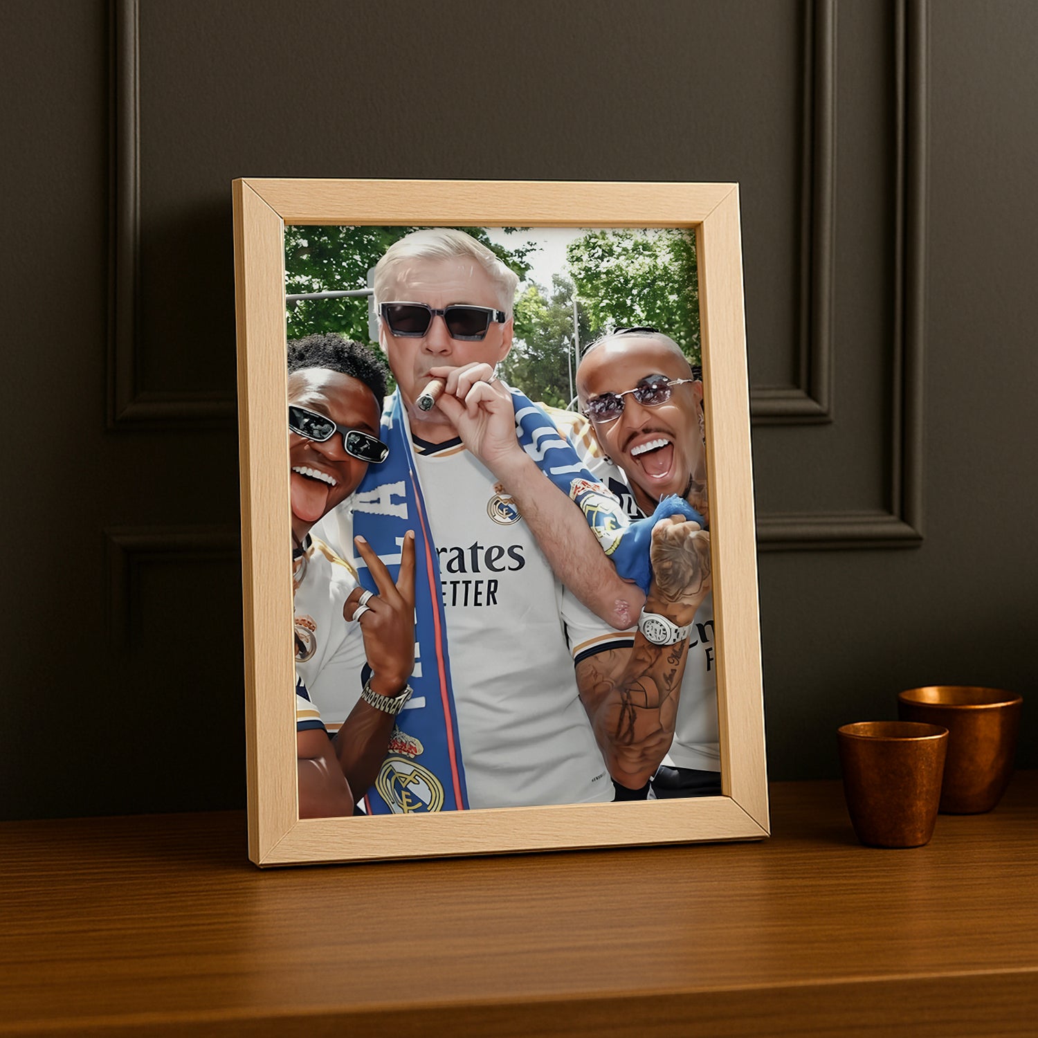 Un Chef-d'Œuvre Pour les Fans du Real Madrid et des Maîtres du Coaching Affichez votre admiration pour Carlo Ancelotti, l'entraîneur emblématique du Real Madrid, avec ce cadre photo exceptionnel ! Imprimé en haute définition, chaque détail met en valeur son charisme, sa stratégie inégalée et ses triomphes historiques, notamment ses victoires en Ligue des Champions avec les Merengues. Parfait pour apporter une touche de prestige et de passion footballistique à votre salon, bureau ou espace de jeu.