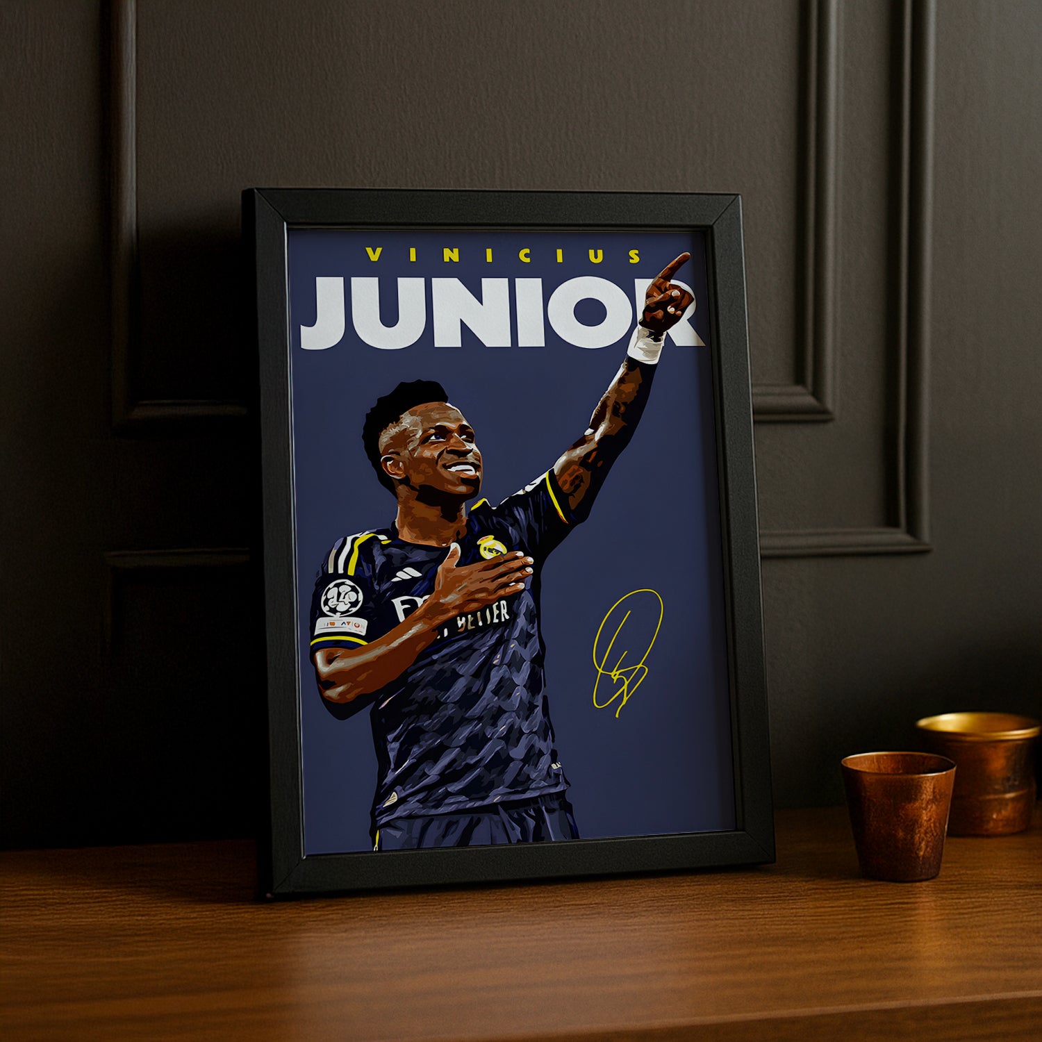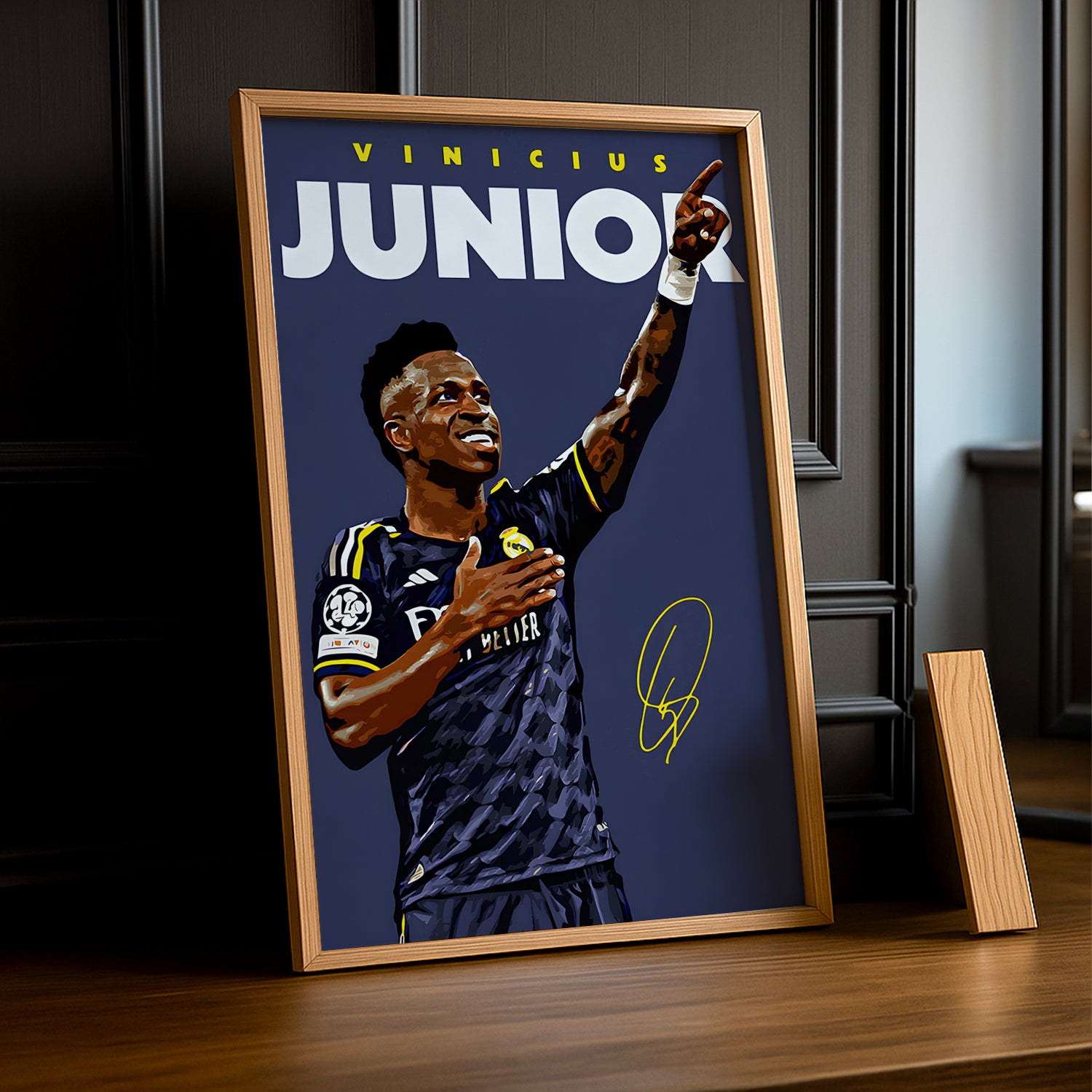 Ce cadre photo HD de Vinicius Jr, attaquant flamboyant du Real Madrid, est imprimé sur un papier premium offrant une qualité d’image exceptionnelle. Chaque affiche est soigneusement encadrée, prête à décorer votre intérieur ou à être offerte à un supporter passionné.