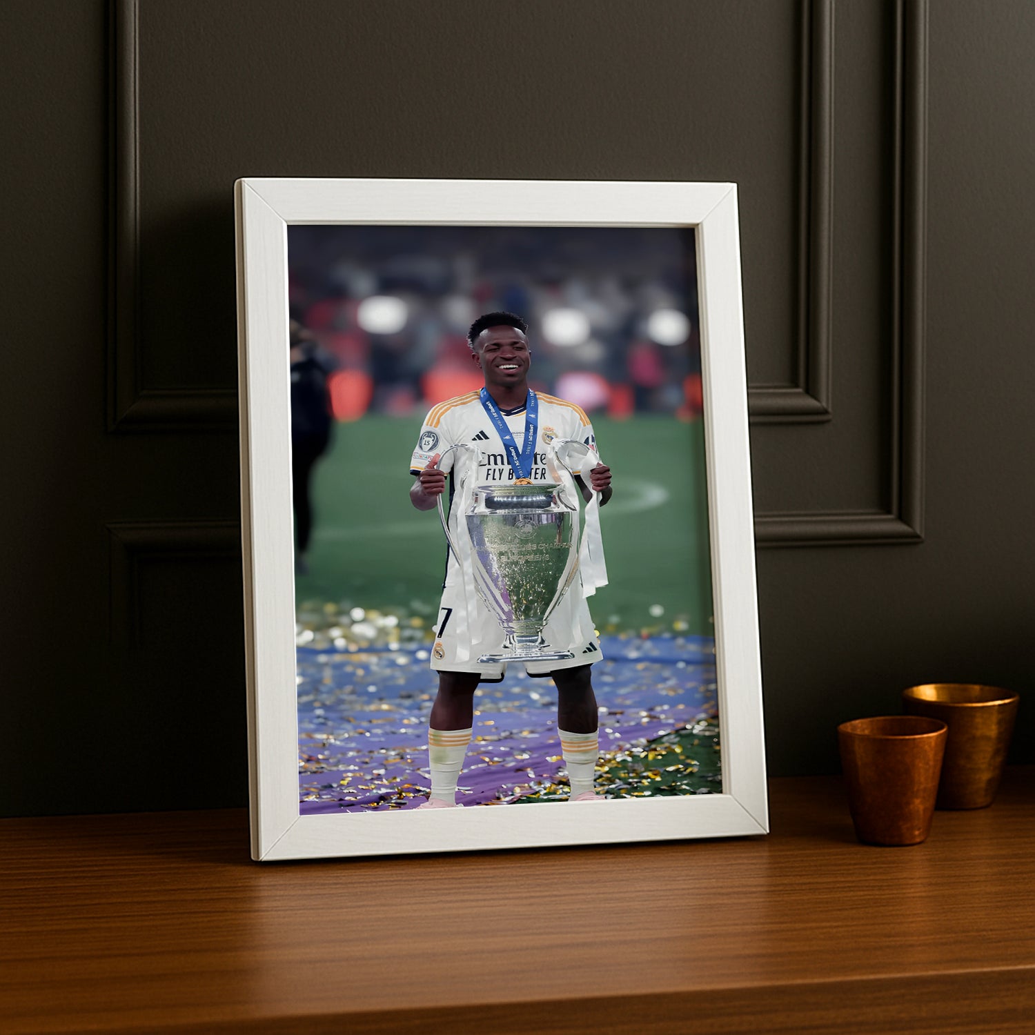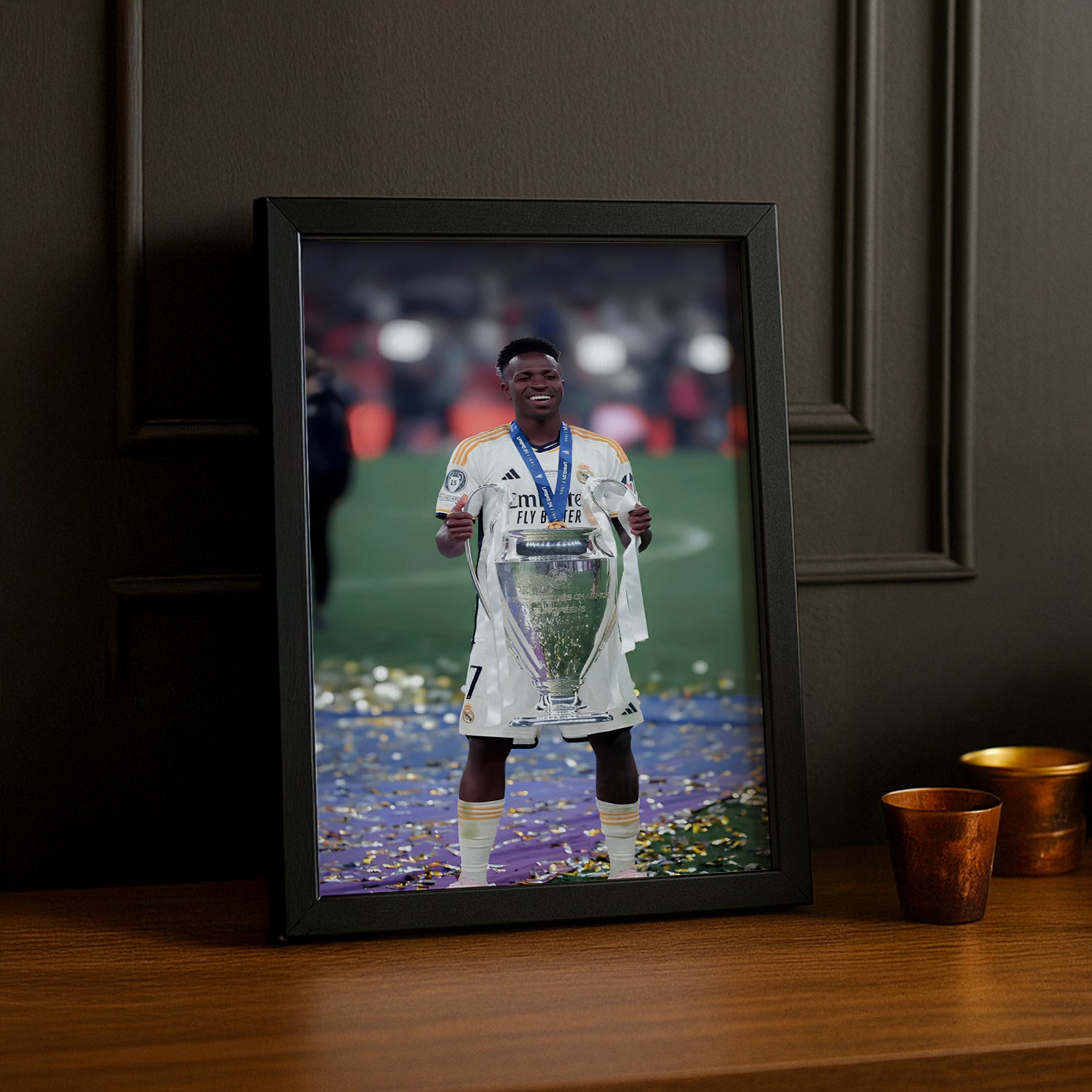 Célébrez les exploits de Vinicius Junior en Ligue des Champions avec ce poster encadré Real Madrid ! Parfait pour les fans qui aiment voir la magie à l’œuvre, ce poster apporte une touche de fun et d’énergie à votre déco, capturant toute la vitesse et l’audace de ce talent brésilien.