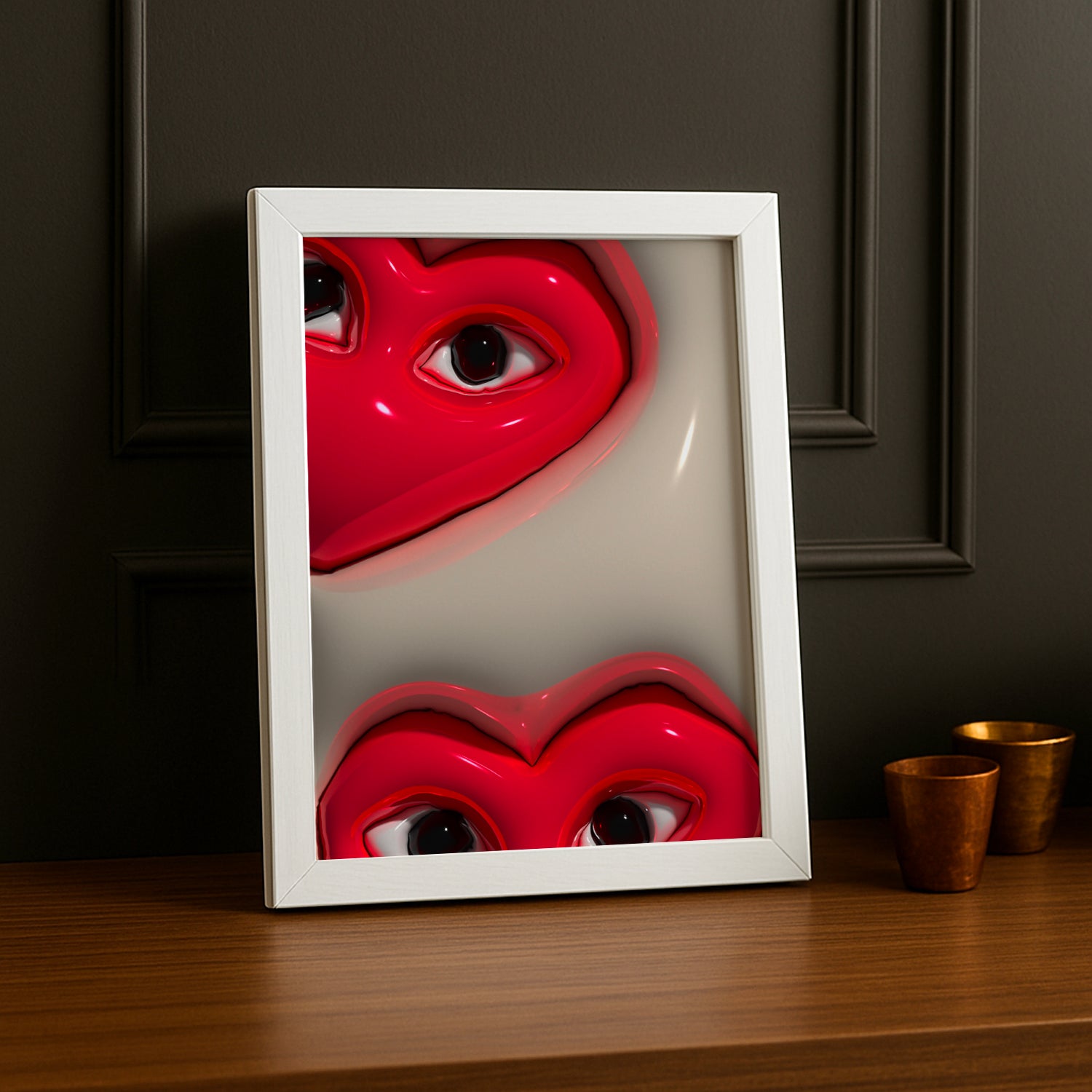 Un Chef-d'Œuvre Pour les Amateurs de Mode Avant-Gardiste Affichez l'esprit unique de Comme des Garçons avec ce cadre photo exclusif ! Inspiré par l’esthétique avant-gardiste de la marque, ce cadre capture l’iconique cœur rouge aux yeux de la ligne PLAY ainsi que l’approche minimaliste et expérimentale chère à Rei Kawakubo. Idéal pour un intérieur moderne et raffiné.