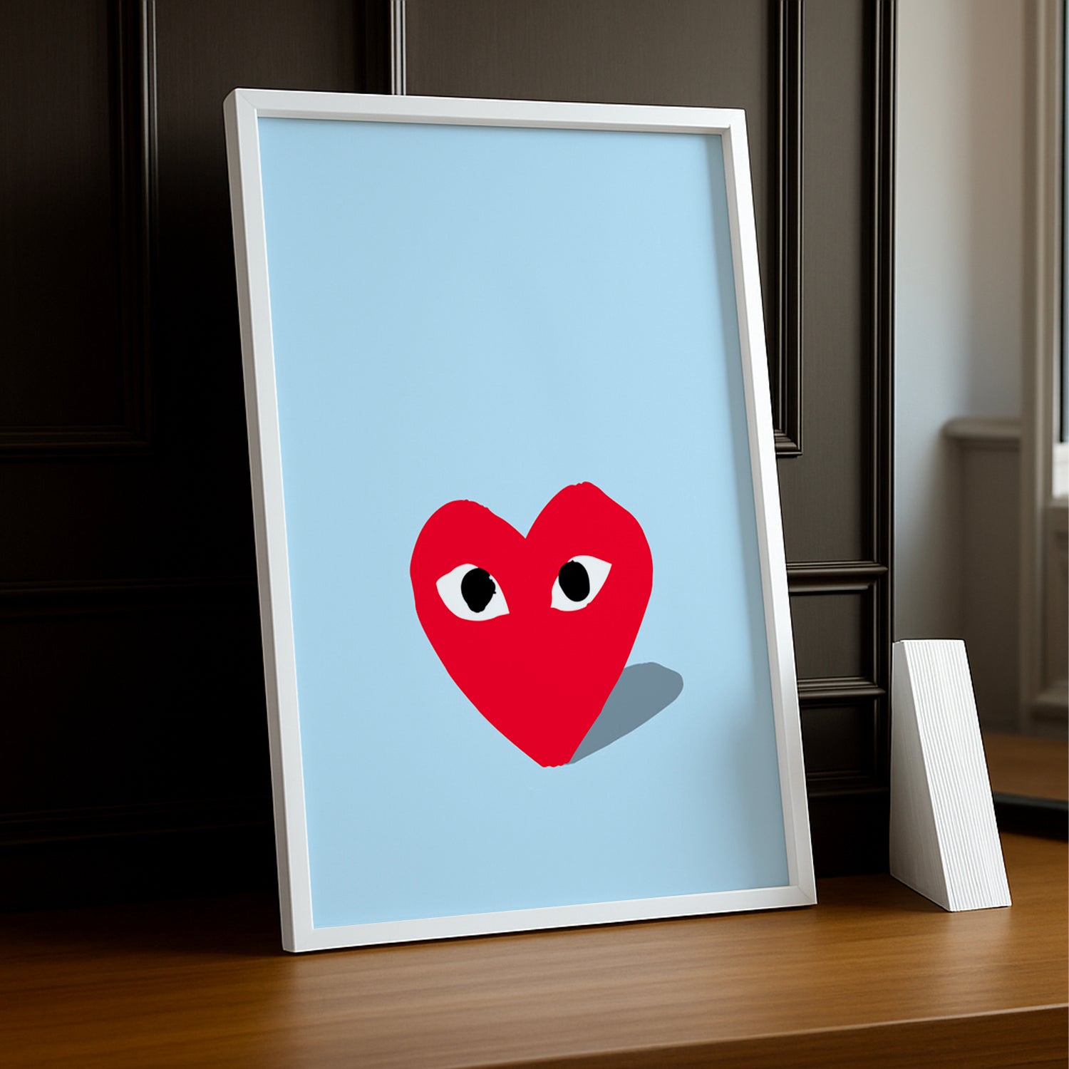 Affichez votre amour pour le style unique de Comme Des Garçons avec ce cadre photo en fond bleu. Ajoutez une touche amusante et décalée à votre décoration intérieure en présentant vos photos préférées dans ce cadre élégant. Parfait pour les fans de mode qui ne se prennent pas au sérieux !