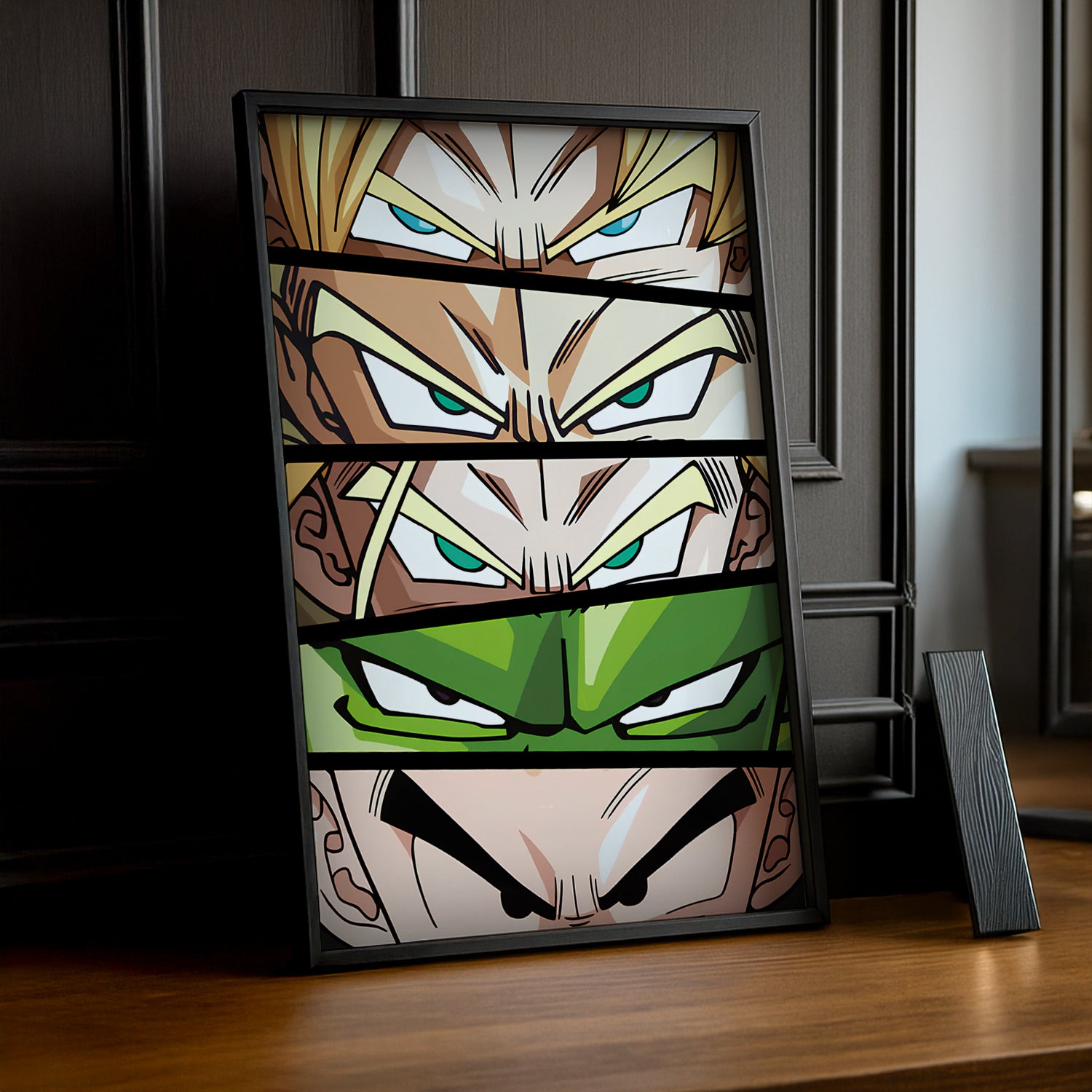 Offrez un regard intense et plein de vie à votre décor avec ce poster des yeux des héros de Dragon Ball Z ! Chaque regard exprime force, courage et détermination pour une ambiance énergique et fun. Idéal pour les fans qui veulent capturer l’essence de leurs personnages préférés dans un style unique et captivant.