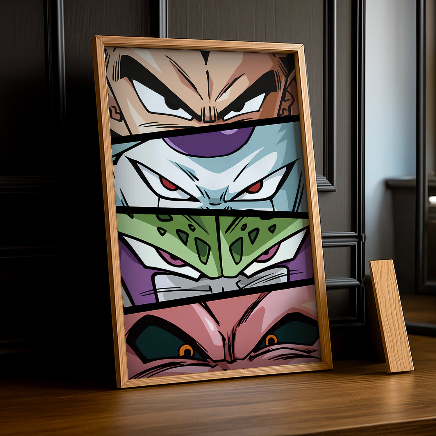 Plongez dans l’univers intense et audacieux de Dragon Ball Z avec ce poster centré sur les yeux fascinants des vilains emblématiques ! Chaque regard déborde de puissance et de caractère, apportant une touche fun et un brin rebelle à votre déco. Parfait pour les fans qui aiment afficher leur côté sombre préféré avec style.