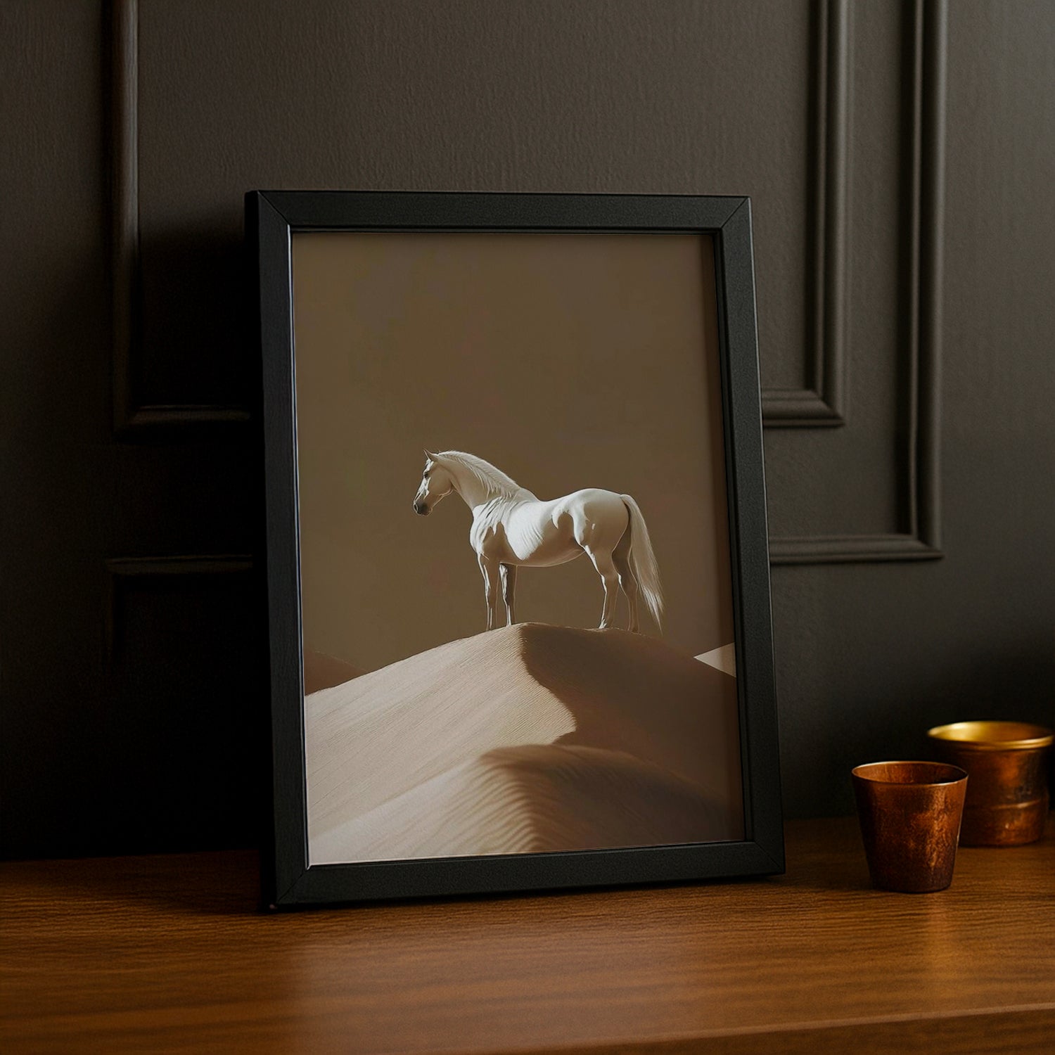 Évadez-vous avec ce cadre photo équitation aux paysages exotiques ! Un cheval blanc majestueux se détache sur les dunes dorées du désert, créant une atmosphère aventurière et poétique. Idéal pour les cavaliers rêveurs, ce cadre transforme vos photos en véritable voyage. À accrocher dans votre chambre ou votre espace personnel pour une décoration inspirante et dépaysante !