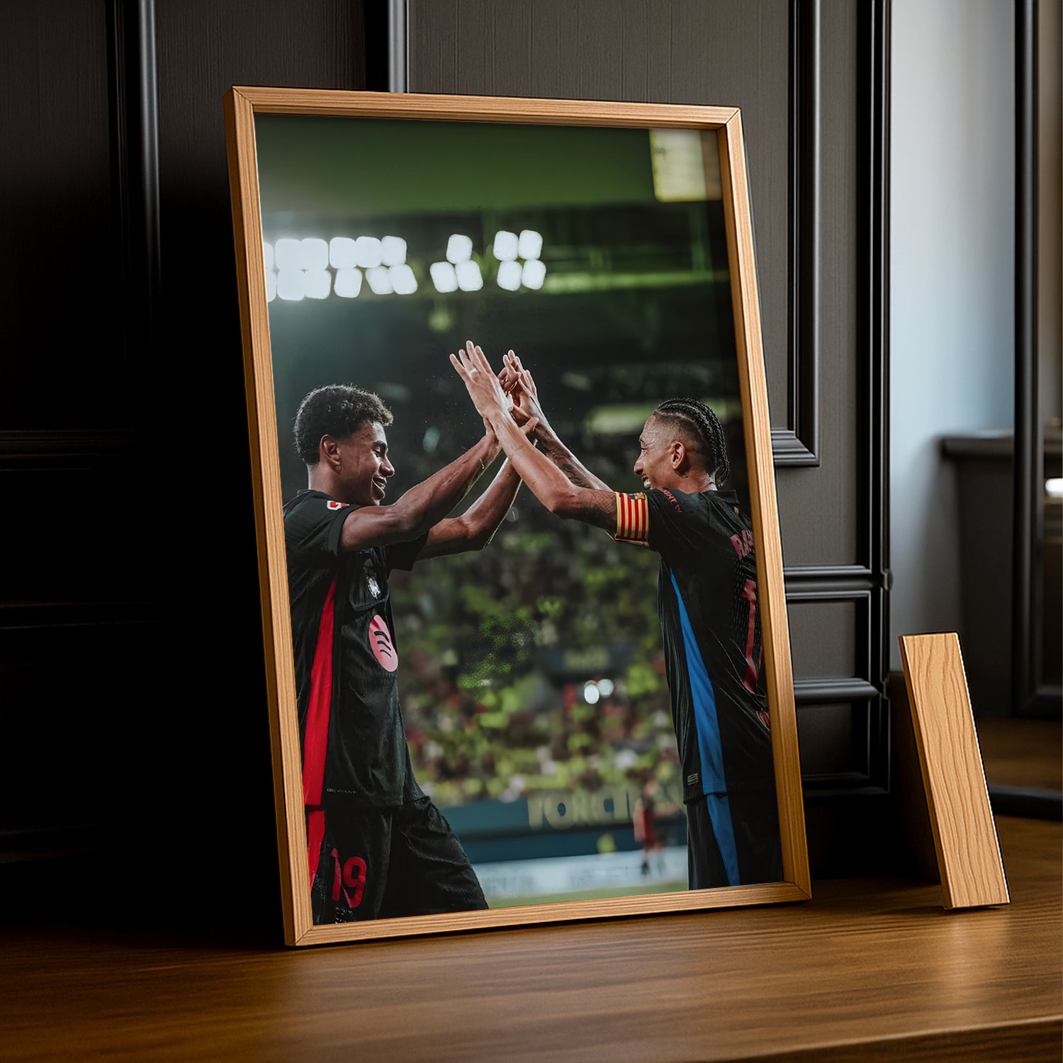 Un Chef-d'Œuvre Pour les Fans de Football et du FC Barcelone Affichez votre passion pour Lamine Yamal et Raphinha, deux des attaquants les plus électrisants du FC Barcelone, avec ce cadre photo impressionnant ! Imprimé en haute définition, chaque détail capture l'agilité et le talent brut de Yamal, combinés à la puissance et à la précision de Raphinha, incarnant l'esprit offensif et l’héritage du Barça.