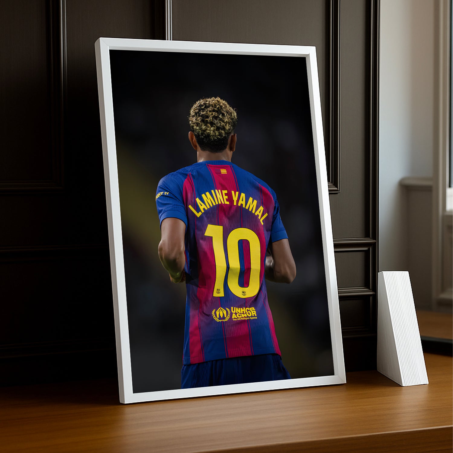 Mettez en lumière le jeune talent Lamine Yamal avec ce poster encadré du FC Barcelone, orné du numéro 10 ! Parfait pour les fans qui aiment suivre les étoiles montantes, ce poster apporte une touche ludique et vibrante à votre décoration, célébrant l’avenir prometteur du club.