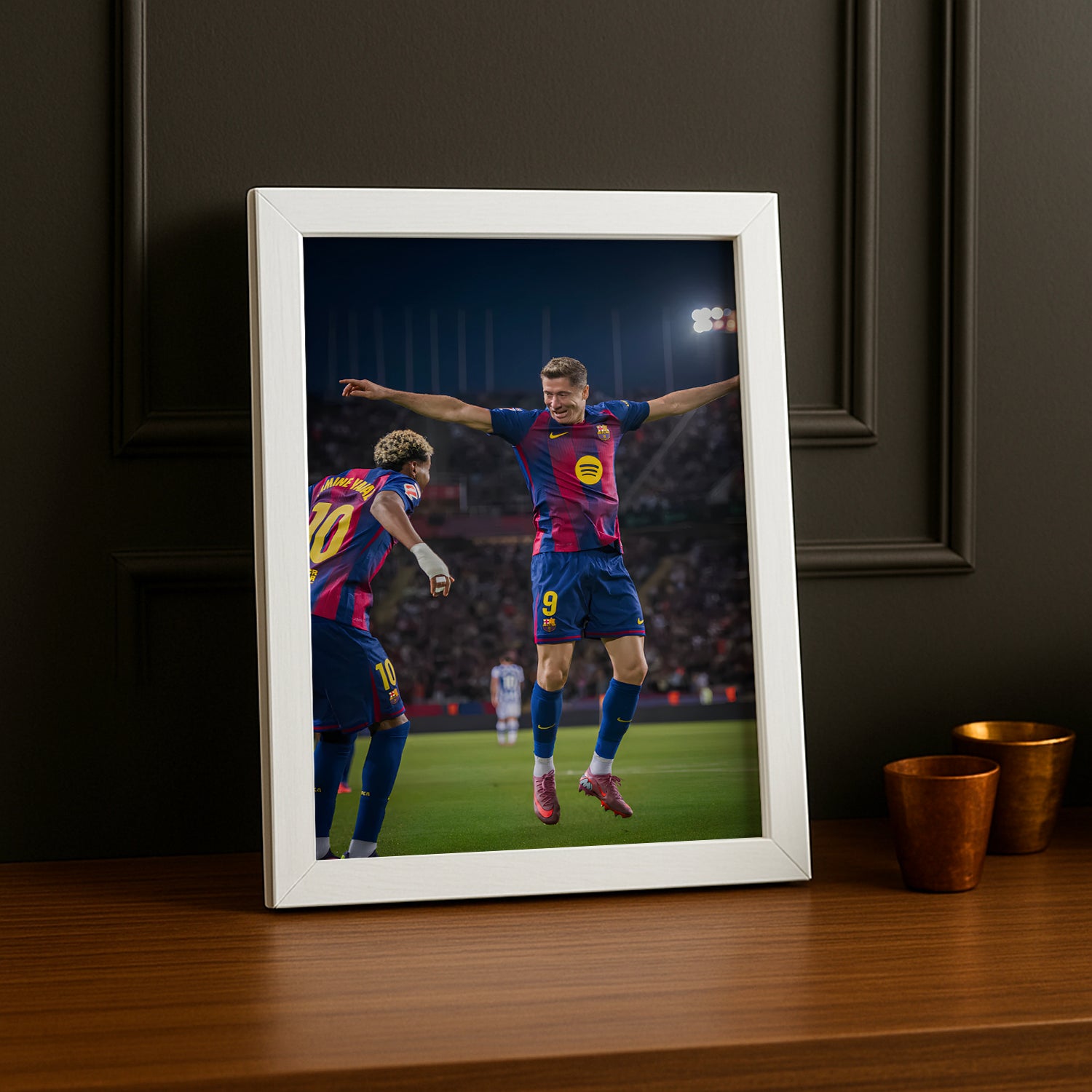 Faites vibrer votre mur avec ce poster encadré du duo explosif Lewandowski et Yamal du FC Barcelone ! Parfait pour les fans qui aiment mixer expérience et jeunesse, ce poster apporte une ambiance pleine d’énergie et de fun à votre déco, célébrant le meilleur des deux mondes sur le terrain.