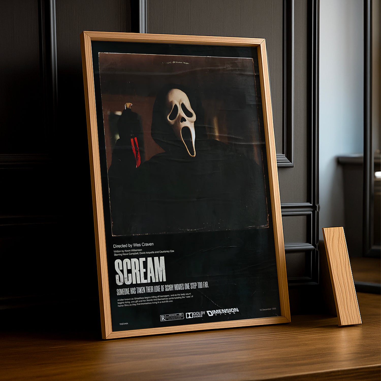 Ajoutez un frisson de fun à votre déco avec le poster Scream ! Ce poster iconique mêle suspense et humour, parfait pour les amateurs de sensations fortes qui aiment garder une touche ludique. Une pièce qui fera crier de plaisir vos murs et vos invités !