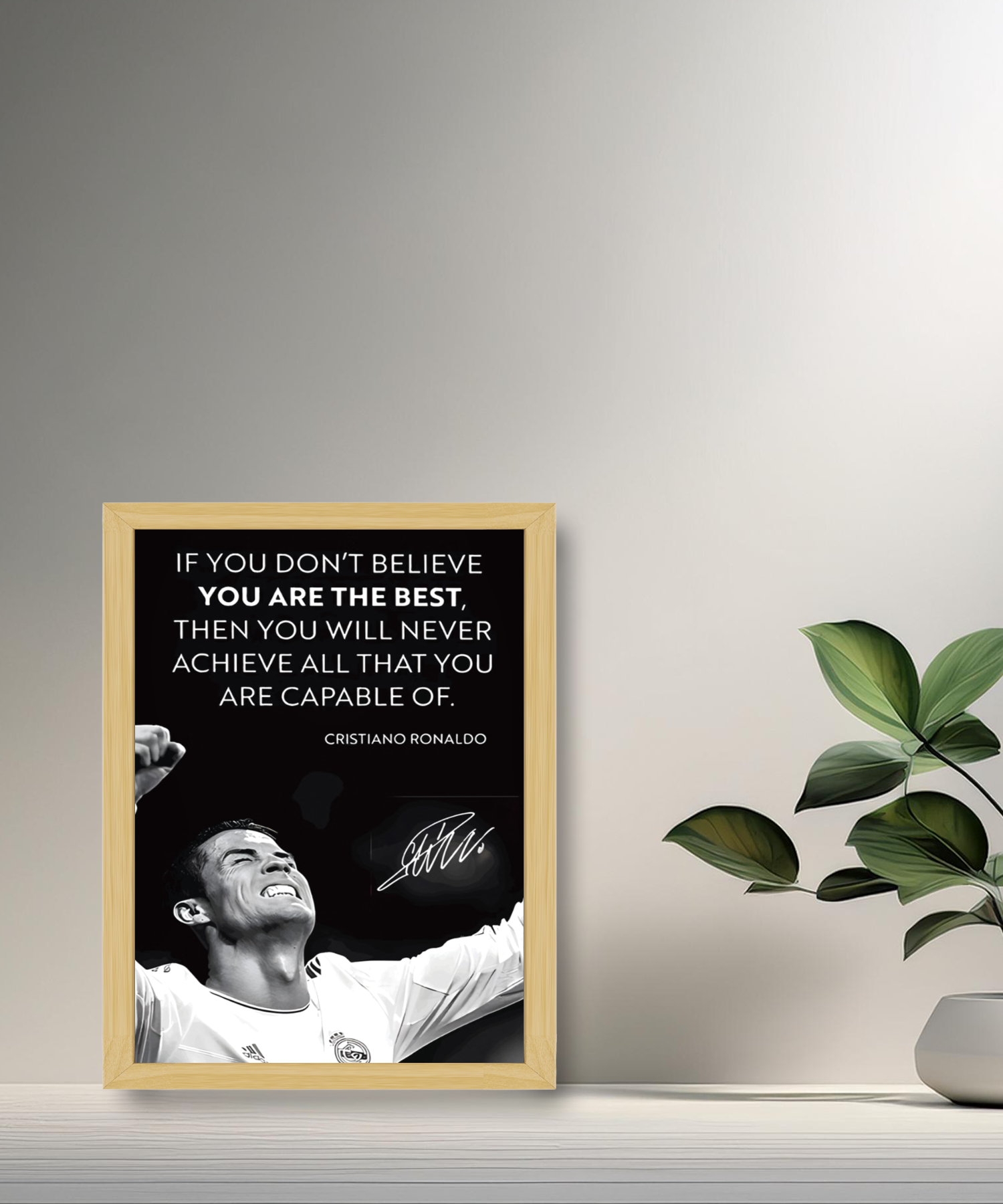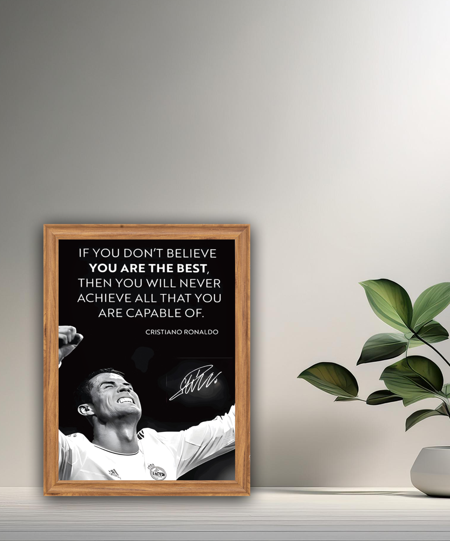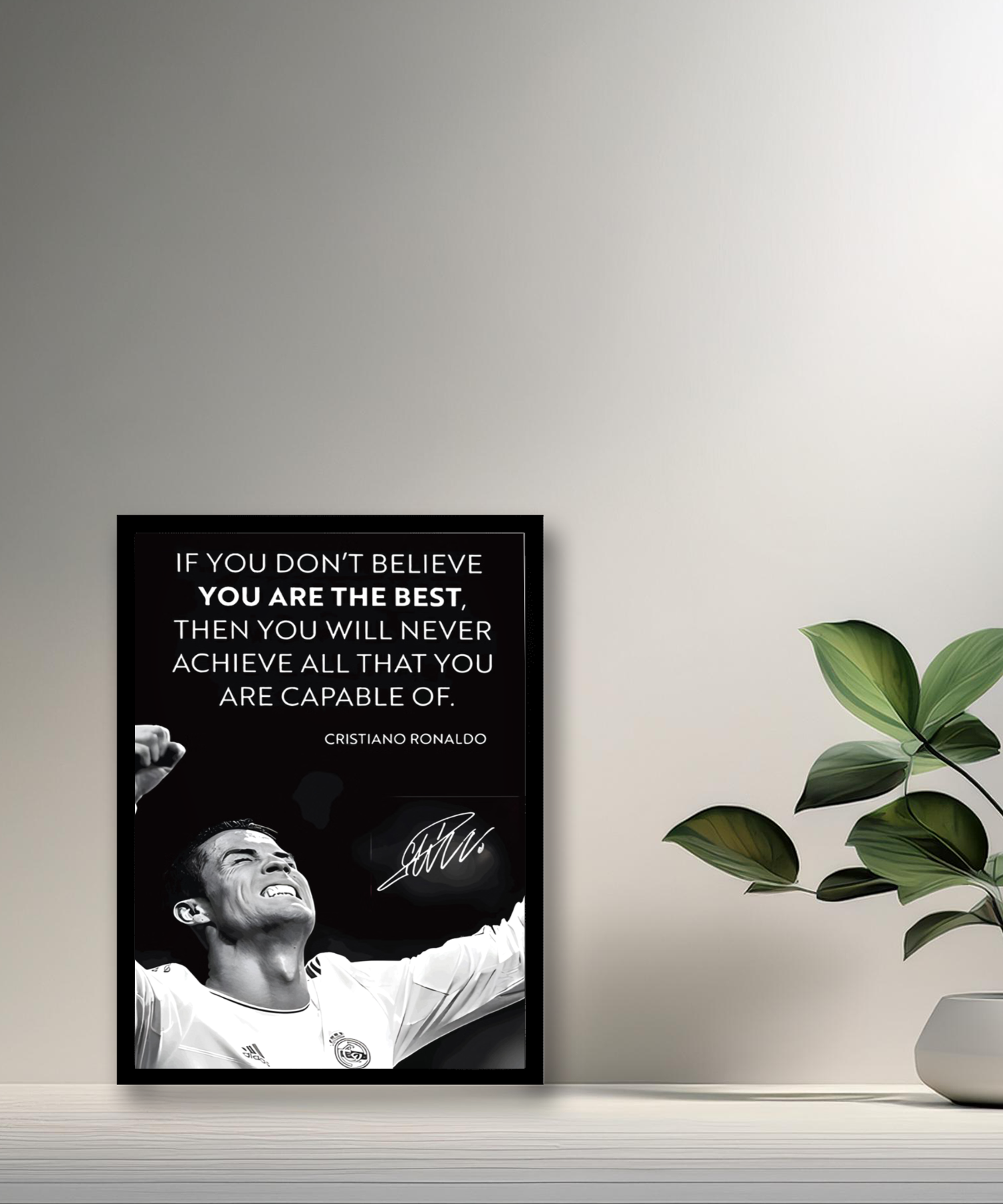 Affichez votre admiration pour Cristiano Ronaldo, l'un des meilleurs joueurs de l'histoire du football, avec ce cadre photo exceptionnel ! Imprimé en haute définition, chaque détail capture sa puissance, sa détermination et son incroyable palmarès, dont 5 Ballons d'Or, des titres avec Manchester United, Real Madrid, Juventus, et ses exploits inoubliables avec l'équipe nationale du Portugal. Parfait pour ajouter une touche de légende et de motivation à votre salon, bureau ou espace de jeu.