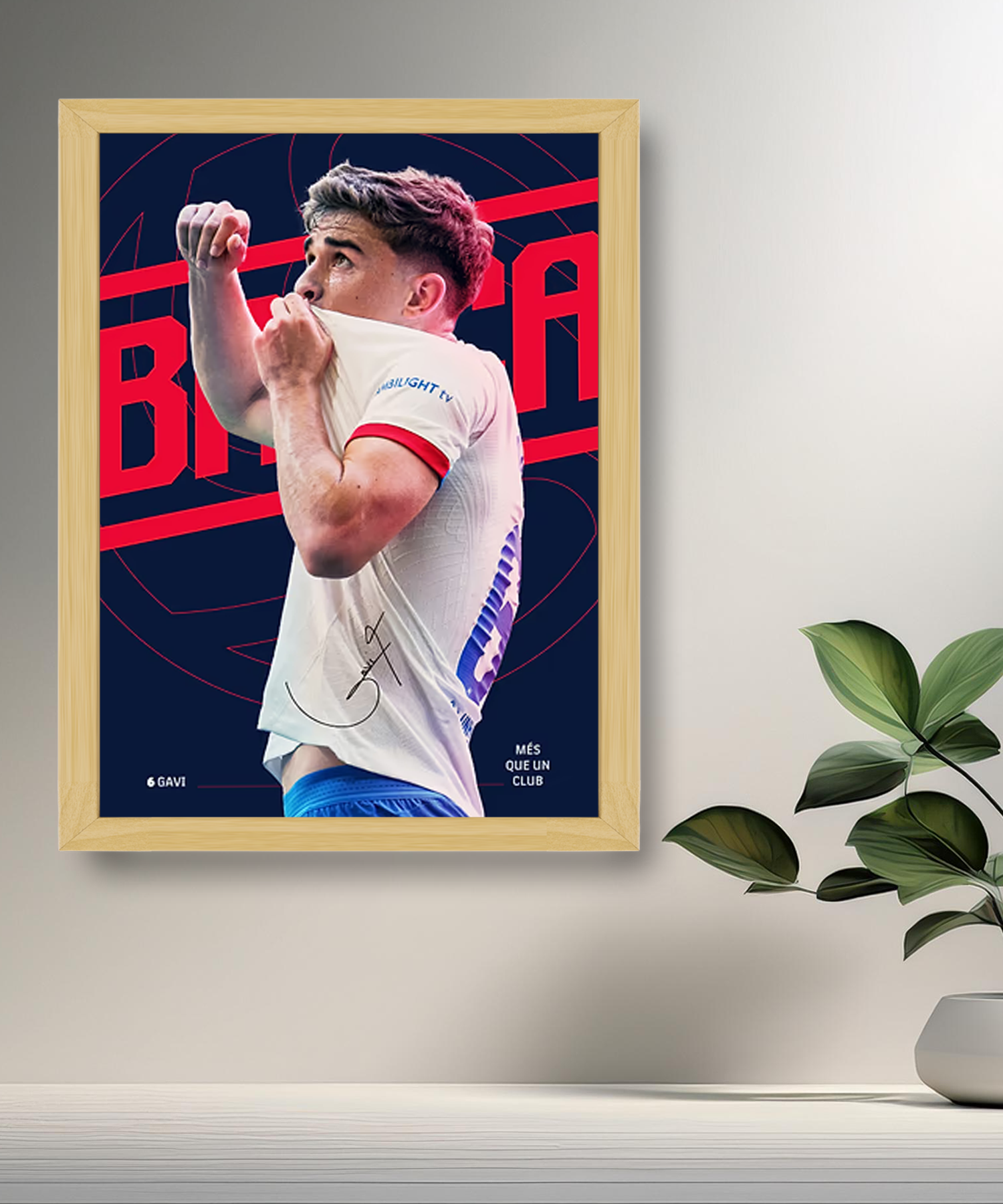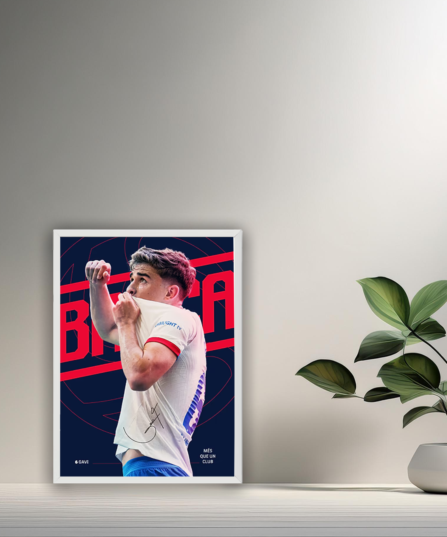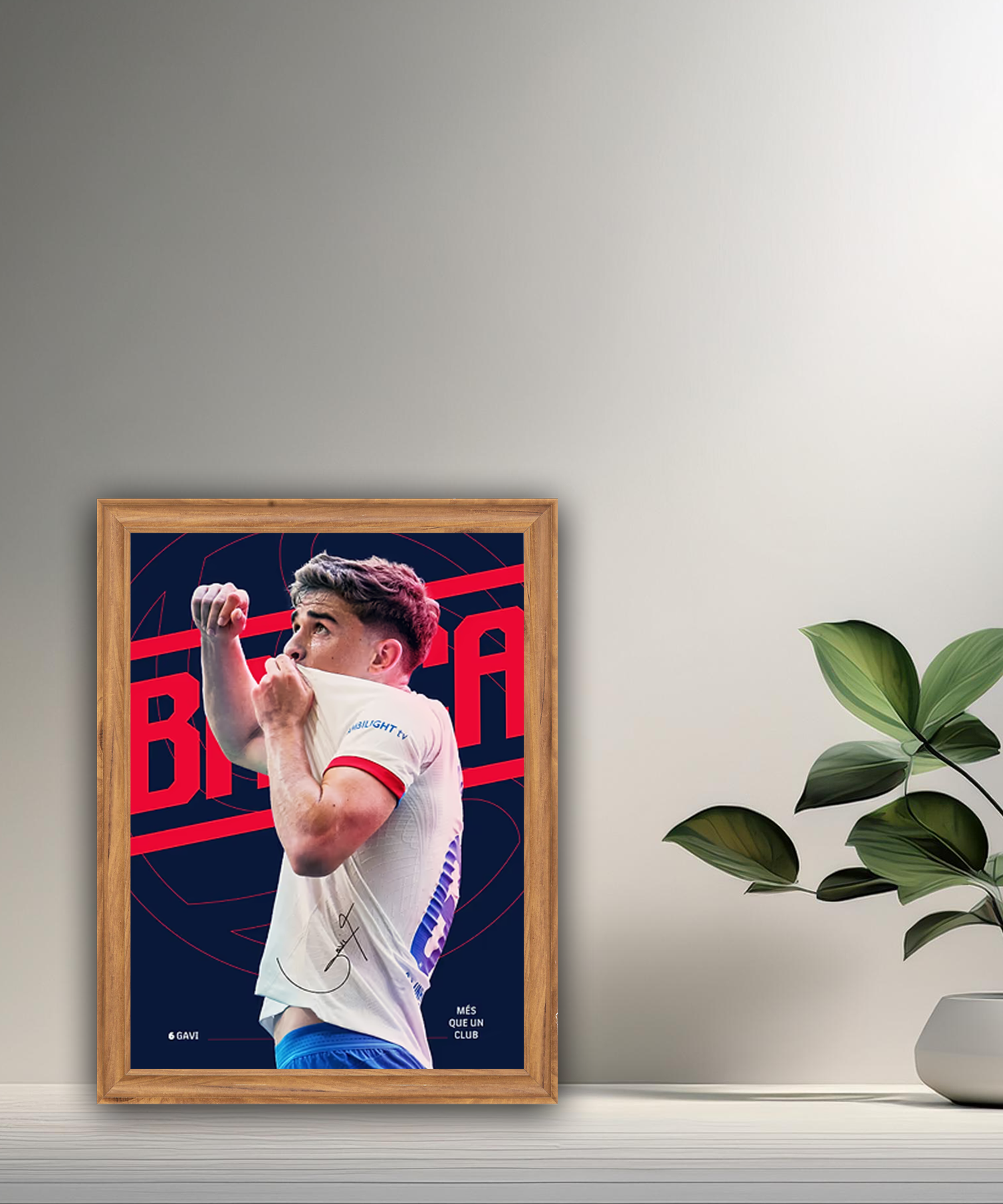 Affichez votre passion pour Gavi, le jeune prodige du FC Barcelone, avec ce cadre photo impressionnant ! Imprimé en haute définition, chaque détail capture son énergie débordante, sa combativité sur le terrain et sa maîtrise du ballon. Ce cadre est parfait pour ajouter une touche de dynamisme et d’élégance à votre salon, bureau ou espace de jeu.