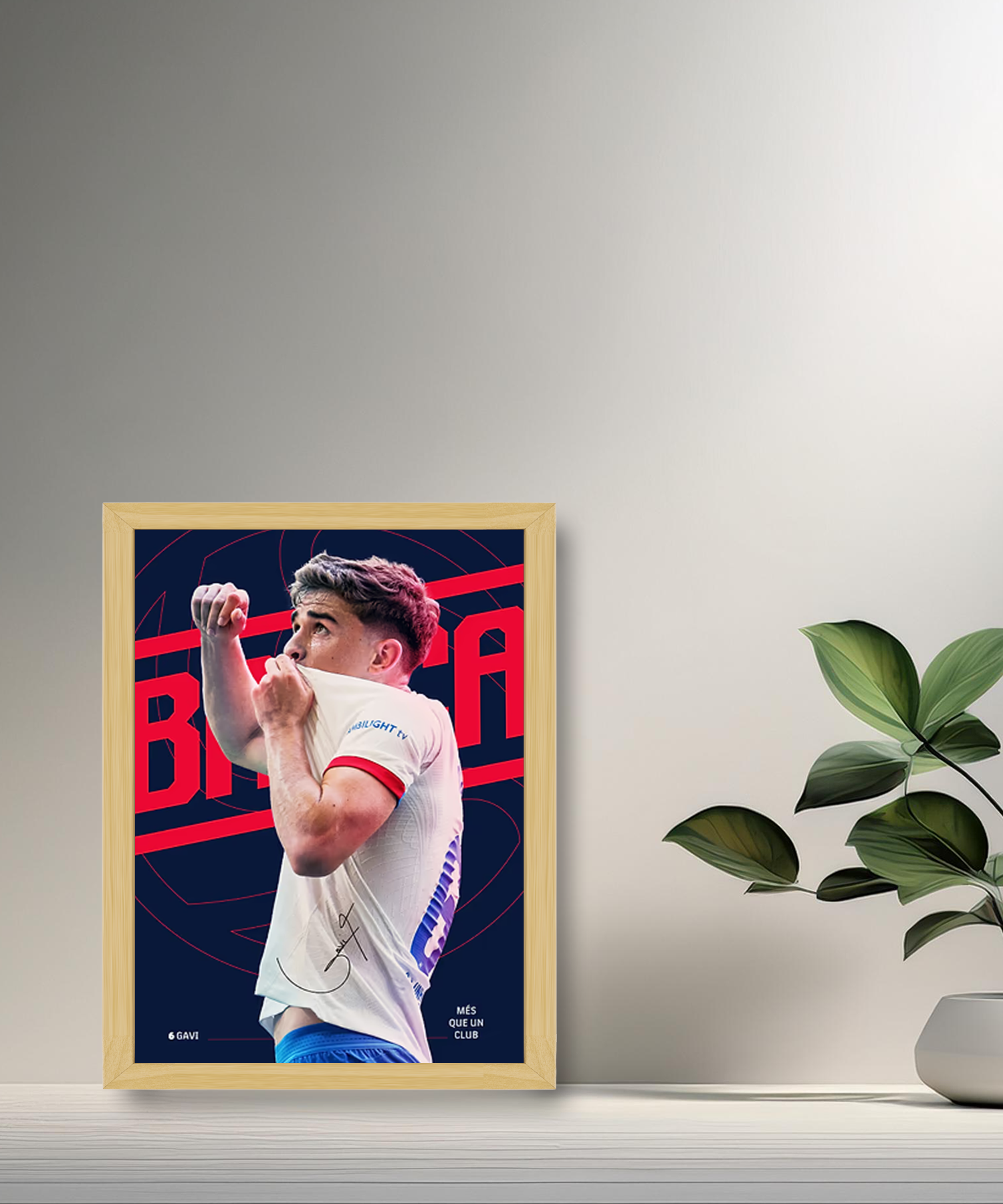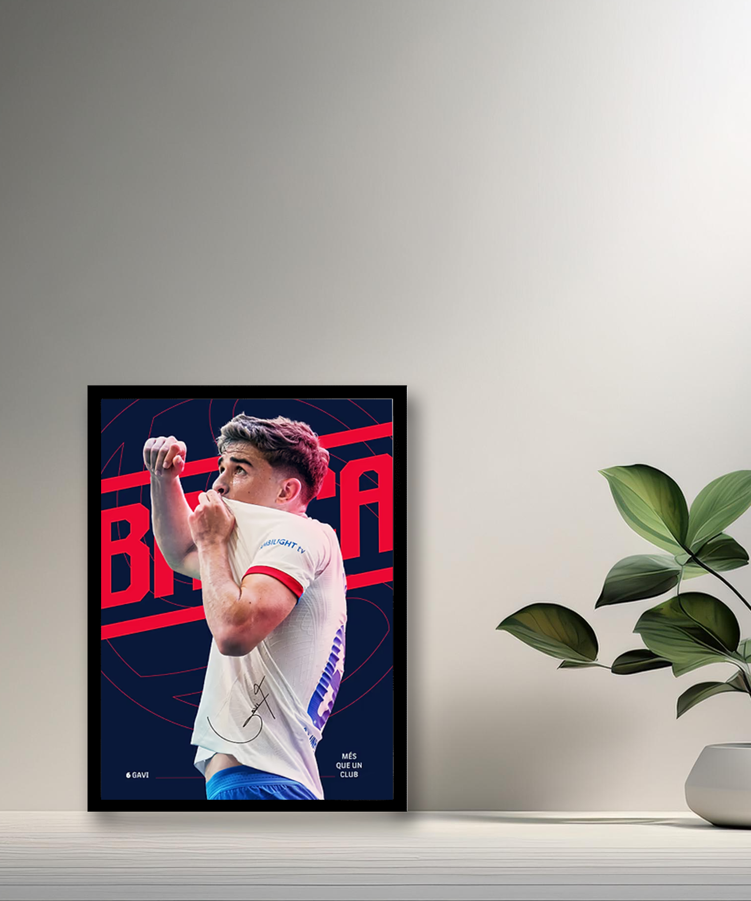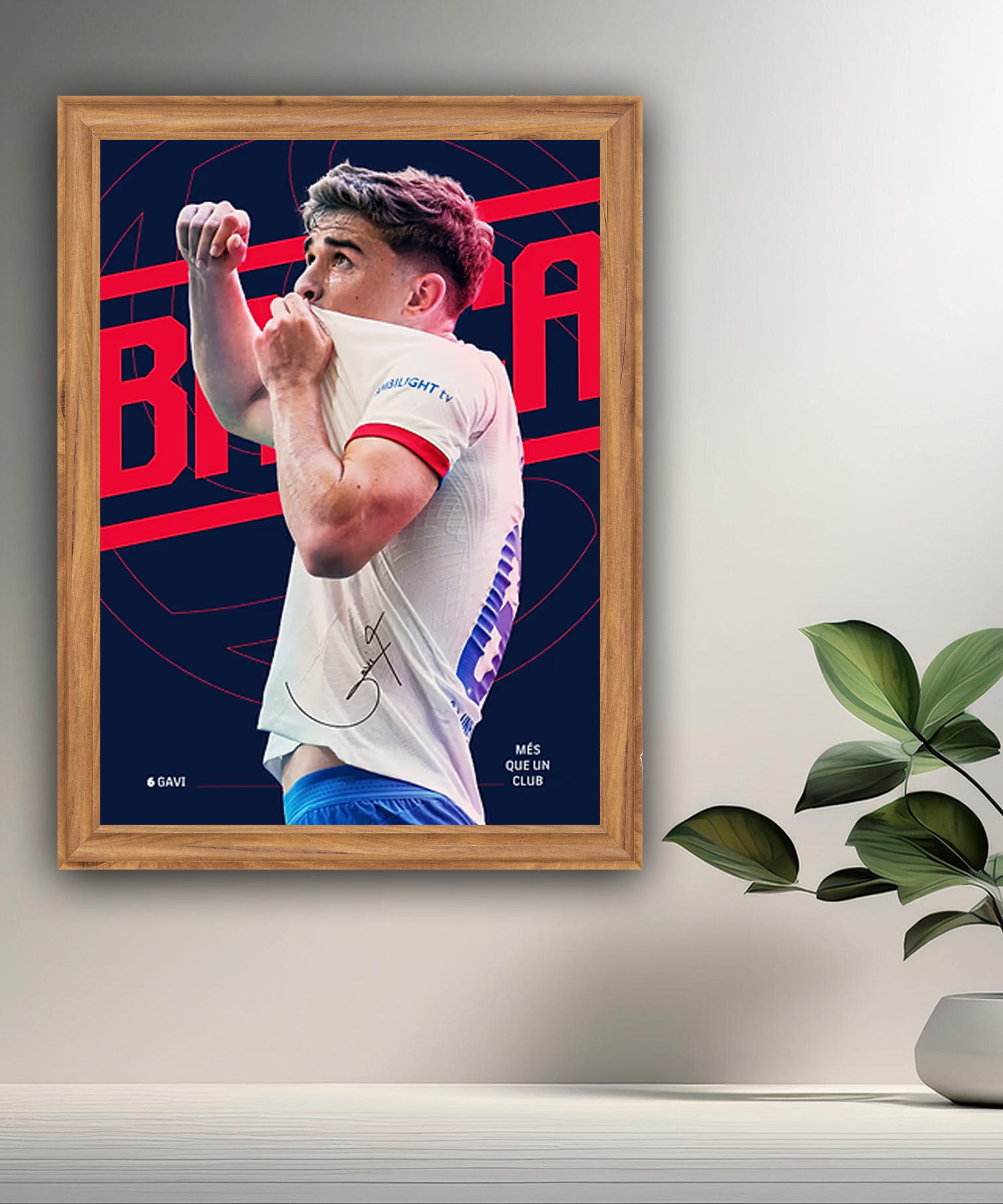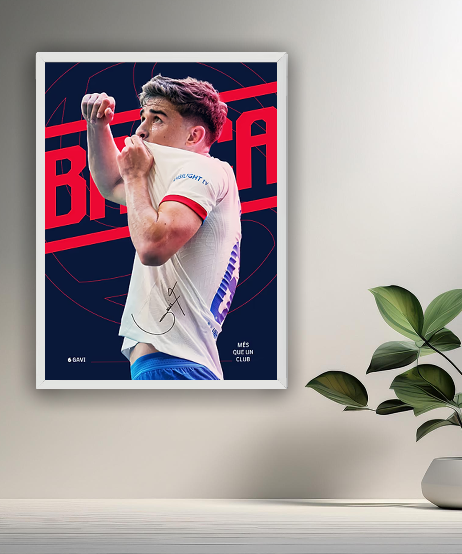 Affichez votre passion pour Gavi, le jeune prodige du FC Barcelone, avec ce cadre photo impressionnant ! Imprimé en haute définition, chaque détail capture son énergie débordante, sa combativité sur le terrain et sa maîtrise du ballon. Ce cadre est parfait pour ajouter une touche de dynamisme et d’élégance à votre salon, bureau ou espace de jeu.