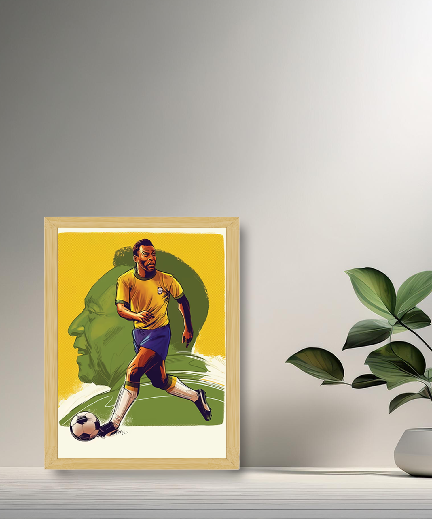 Ajoutez une Touche de Légende à Votre Décor Ne manquez pas l’opportunité d’ajouter ce chef-d'œuvre mural à votre collection ou d’offrir ce cadeau inoubliable à un passionné de Pelé et du football mondial.