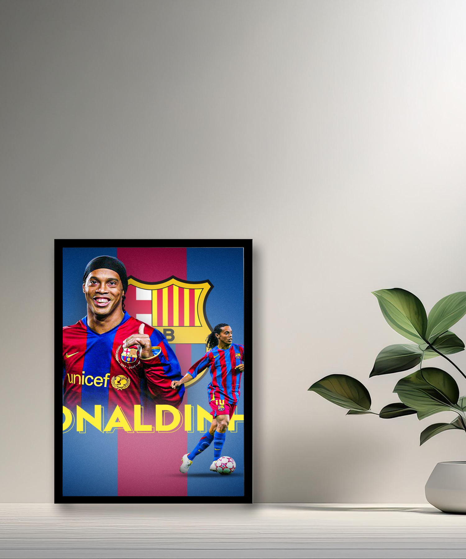 Un Chef-d'Œuvre Pour les Fans de Football et de Génies Techniques Affichez votre admiration pour Ronaldinho, l'un des joueurs les plus charismatiques et créatifs de l'histoire du football, avec ce cadre photo exceptionnel ! Imprimé en haute définition, chaque détail capture son incroyable technique, ses dribbles magiques, et ses sourires inoubliables, qui ont marqué des millions de fans à travers le monde, notamment pendant ses années dorées au FC Barcelone et son rôle essentiel avec le Brésil.
